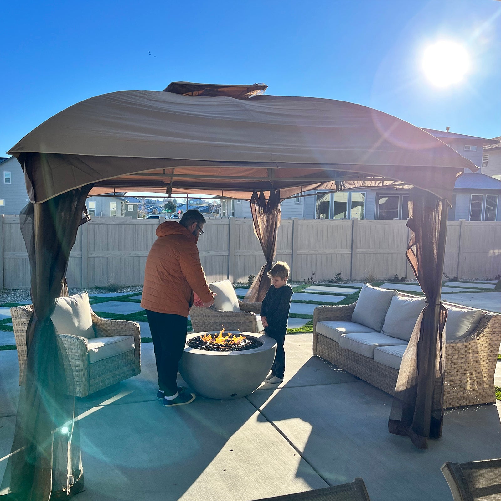 A fire pit table is a sleek, weather-resistant solution for bringing warmth and enjoyment to your patio. They’re safer than traditional fire pits since they contain the flame, making them an excellent choice for families with young kids. Outdoor fire pits are also a breeze to clean and maintain, perfect for your busy schedule.