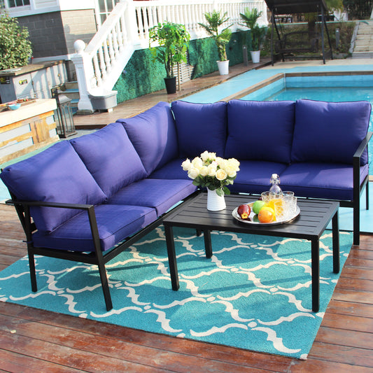 MFSTUDIO Square Table and Cushioned Swivel Chairs 5-Piece Metal Patio Dining SetColor: Black;Include: 4 x Chairs, 1 x Table;Table Size: L 37" x W 37" x H 28", Diameter of umbrella hole:1.57", Chair size: W 22" x D 25" x H 35", Seat Height: 15.5"; 300 lbs weight capacity; The anti-rust and weather-resistant heavy-duty frame withstands...