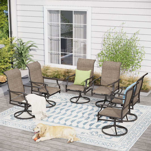 PHI VILLA Patio Textilene Swivel Chair Outdoor Dining Set - BrownSpecifications:Overall Dimension: Chair: W 19.3" x L 20.9" x H 39.3"; Chair Material: steel frame/mesh fabric seat and back COMFORTABLE SWIVEL DINING CHAIR: The round, swivel base and extra-wide seat design make the chair more stable. Slightly gentle rocking, ergonomic back support, and curved smooth arms...