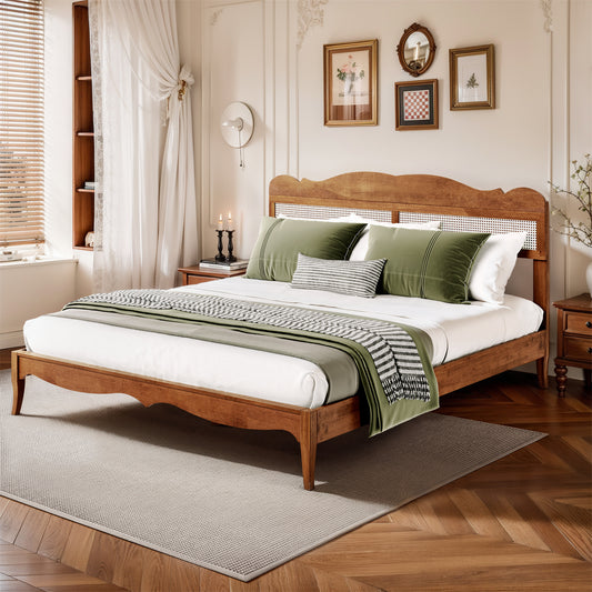Classic Wooden Bed Frame with Rattan Headboard - Sophia & WilliamTransform your bedroom into a serene sanctuary with our elegantly designed bed featuring a handwoven rattan headboard and vintage American charm. Experience the perfect balance of style and comfort with sturdy construction and an innovative platform design that accommodates your favorite mattress. Embrace restful...