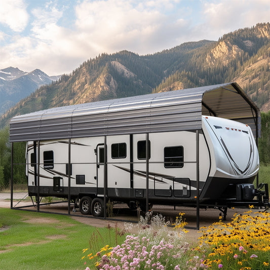 14ft Galvanized Heavy-Duty Outdoor Metal High RV Carports - PHI VILLAOur Heavy-Duty Outdoor RV Carport is a versatile and reliable shelter designed for a variety of recreational vehicles (RVs) and heavy-duty equipment. With a height of 14 feet, this carport provides ample space for parking RVs, campers, trailers, heavy-duty pickup trucks, buses, tractor-trailers, tractors,...