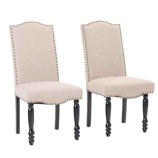 PU Leather Wing Back Side Dining Room Chairs Set of 2 -MFSTUDIO - BlackElevate your dining space with our classic design PU Leather Dining Chairs, embodying simplicity and elegance. The soft cushioned seats are covered in waterproof, durable faux leather with charming nailhead detailing, complemented by sturdy solid wood legs. The pull ring on the back adds...