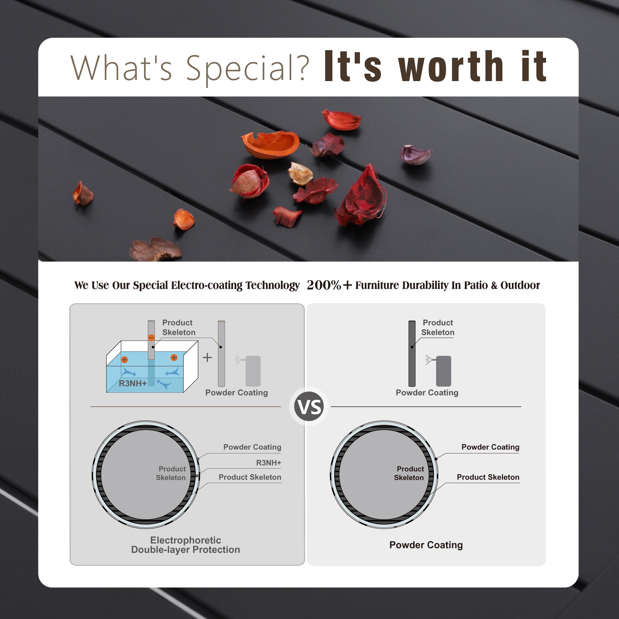• Weather-Resistant: the frame of our dining table is made of sturdy metal steel