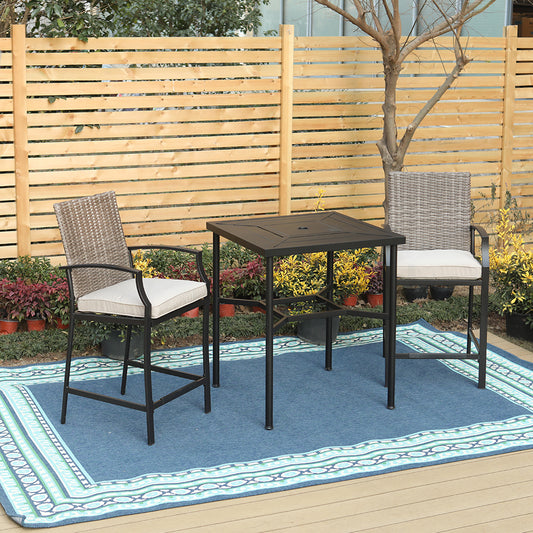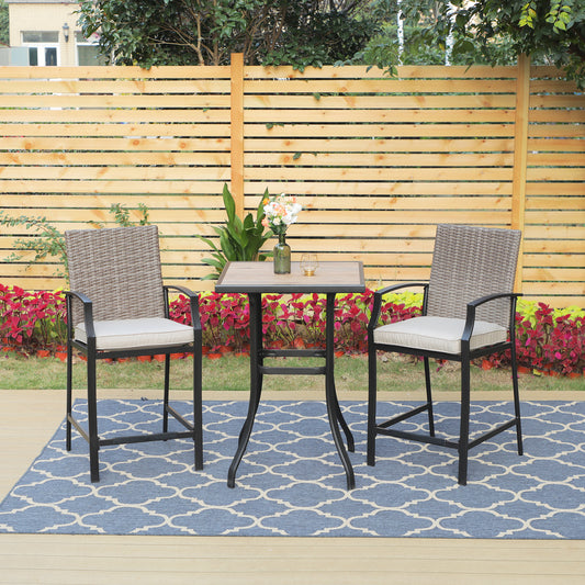 PHIVILLA 3-Piece Outdoor High Bar Set with HDPE Wicker Stools & Wood-Like TableElevate your outdoor entertaining with the 3-Piece Outdoor High Bar Set. Crafted with durable HDPE and handwoven rattan, this stylish set combines lasting performance with a sophisticated design — perfect for patios, balconies, and poolside gatherings. Material: HPDE; Wicker King Rattan Dimensions: Chair: 24.8" L...