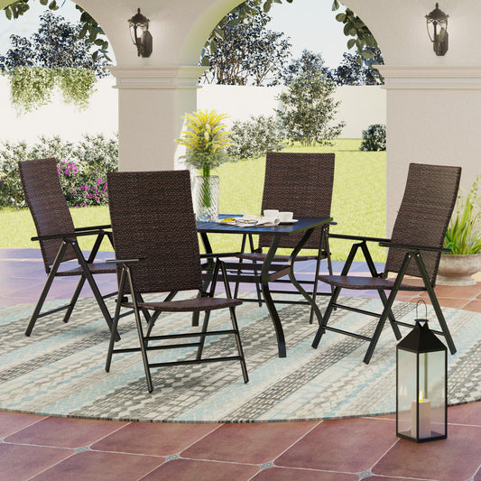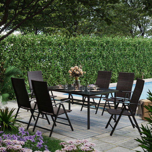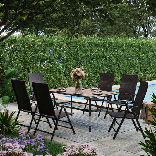 Sophia & William 7PC Steel Panel Rectangle Table & 6 Textilene Reclining Foldable Chairs Patio Outdoor Dining Set - BlackLoad capacity: 250 lbs. Dimension: 28.3”D x 22.8”W x (29.9”-42.1")H, seat: 18.1”W x 16.9”D Table: 60.0”L x 38.0”W x 28.0”H, umbrella hole: 1.57". Details: Premium Material: The patio dining chairs are made of high-quality Textilinene fabric, inner padded quick dry foam and E-coating...