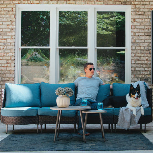 Phi Villa Outdoor Round Curved Wicker Conversation Sofa Set with Navy Cushions and 2 Coffee TablesTransform your outdoor space into a cozy retreat with this Round Curved Wicker Sofa Set. With a back height of 29.13 inches and 4.7-inch thick cushions, it offers an exceptional seating experience that makes every gathering feel warm and inviting. The versatile design allows...
