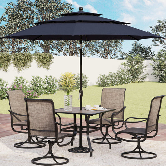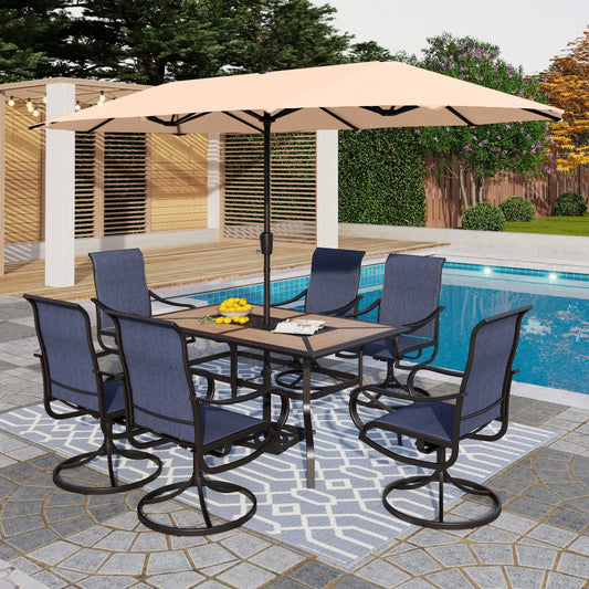 PHI VILLA 8-Piece 13ft Umbrella Patio Dining Set with High Back Textilene Swivel Chair and Metal Table