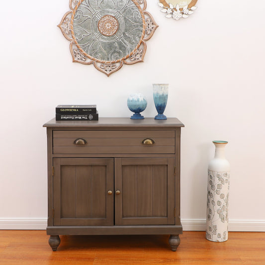 Vintage & Luxury Accent Storage Cabinet-MFSTUDIOThis vintage cabinet, with its carved rustic accents and silver flower design, seamlessly complements shabby chic or vintage-themed interiors, serving both functional and decorative purposes by standing out as a statement piece.Specification:Size: 32.9" L x 15" W x 38.2" HLoad Capacity: 245 lbsMaterial: Solid &...
