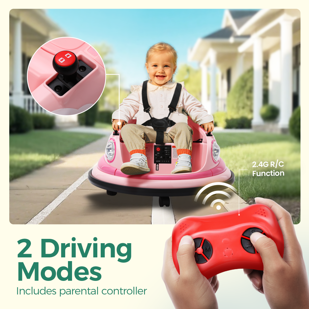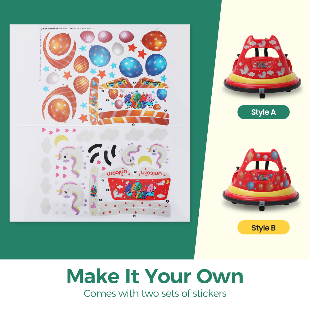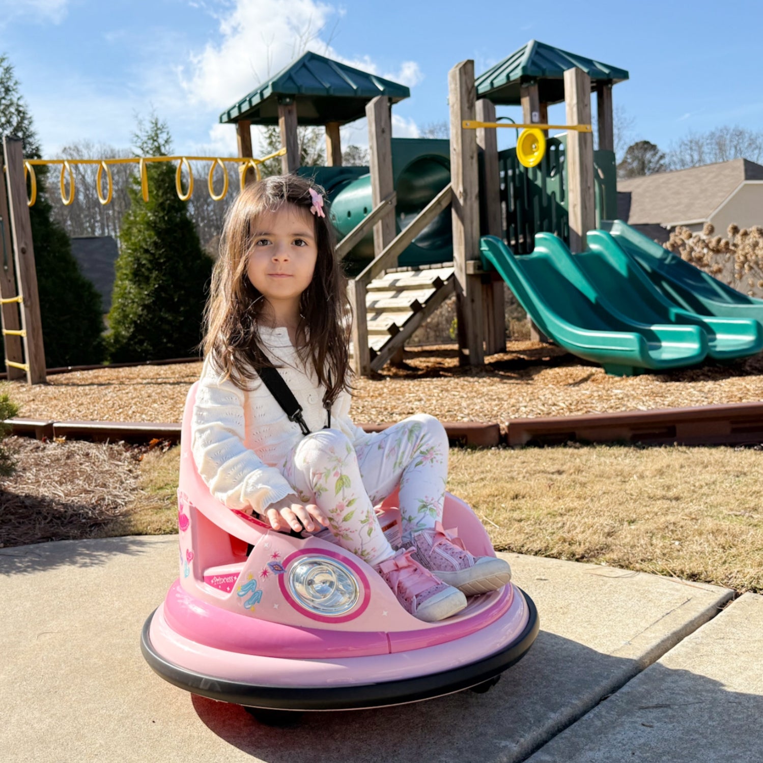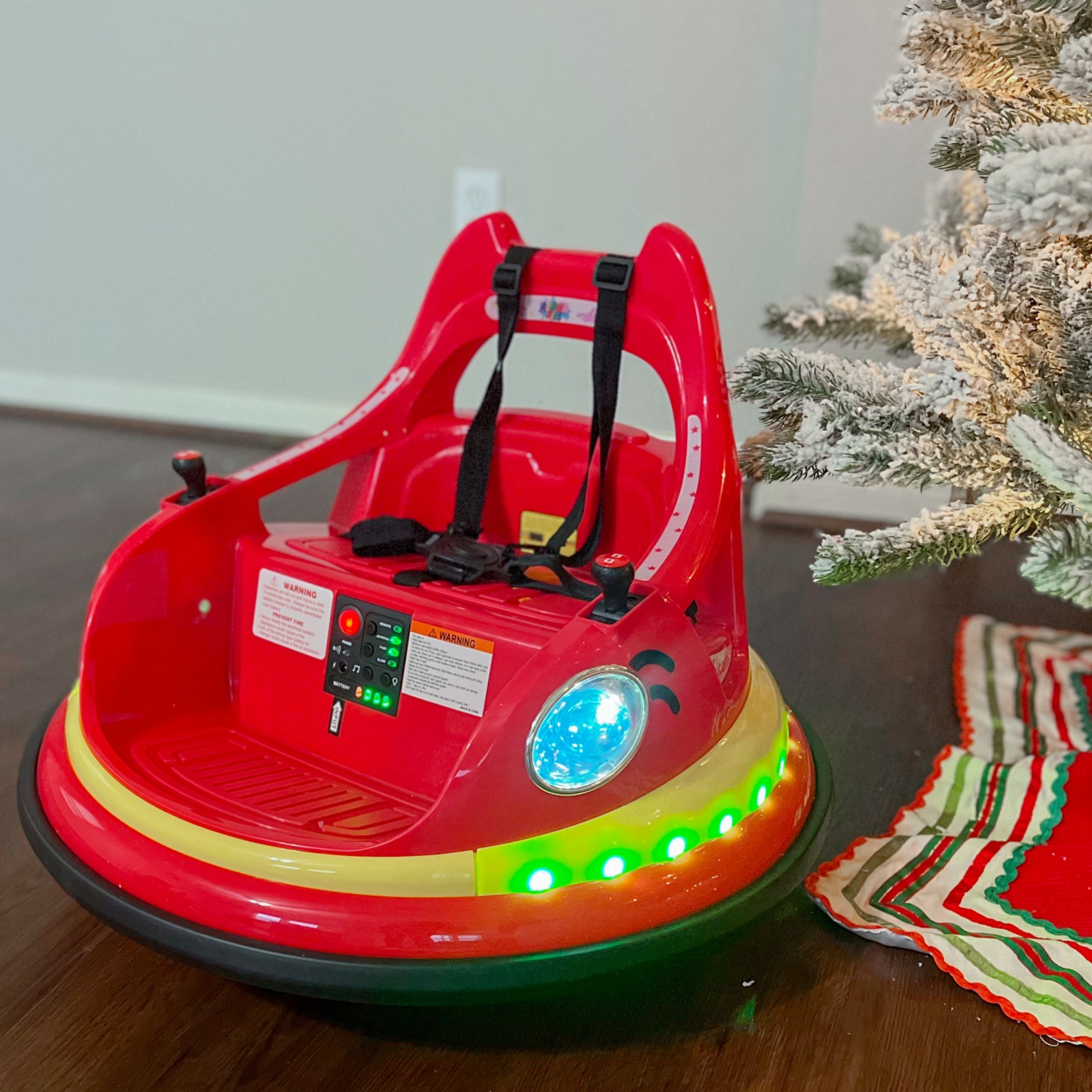 Bring home the thrill of the carnival with this 12V electric bumper car, designed for toddlers and young kids. With 360° spinning action, dual operation modes, and colorful DIY stickers, this ride-on car delivers endless fun while keeping safety a top priority — making it a perfect holiday gift.