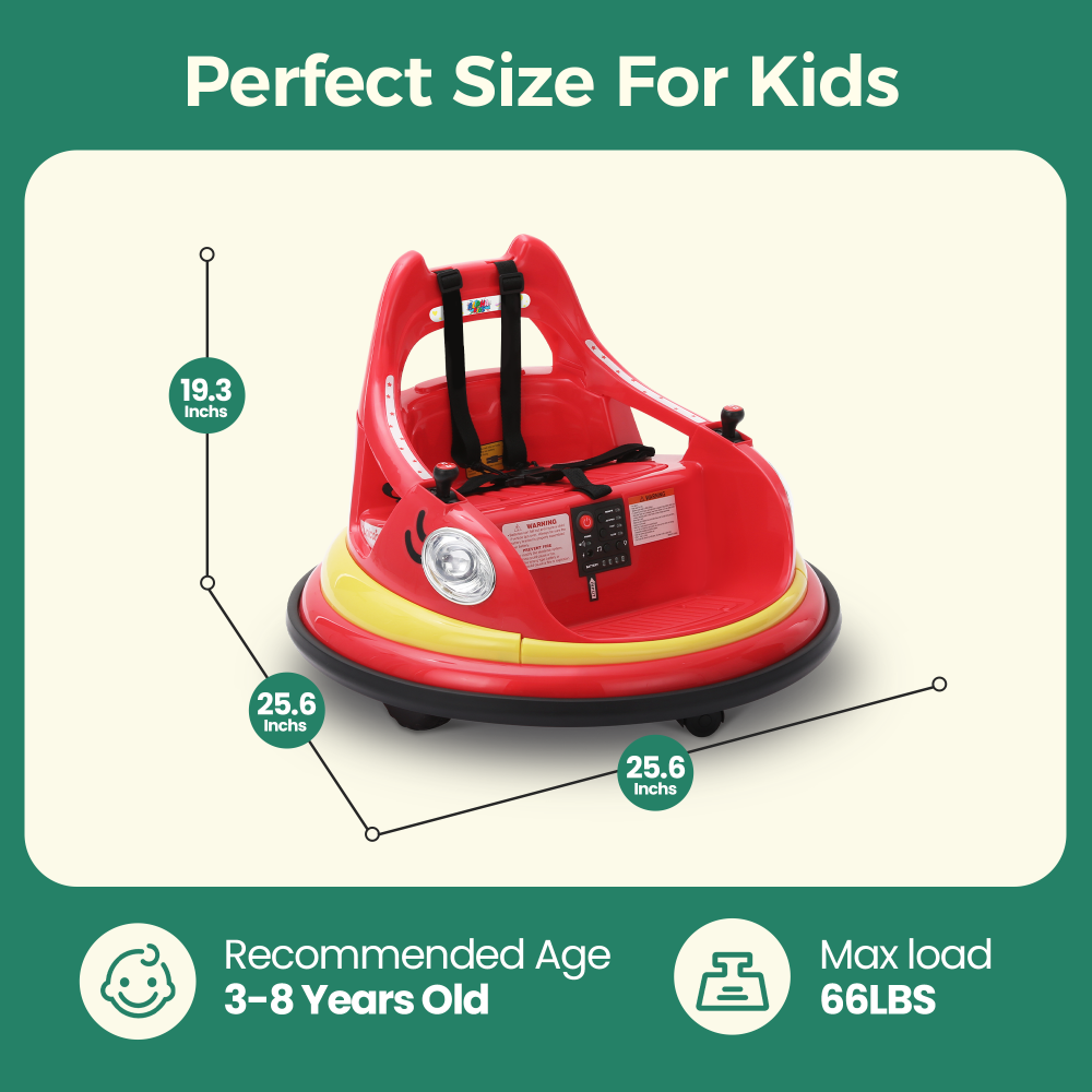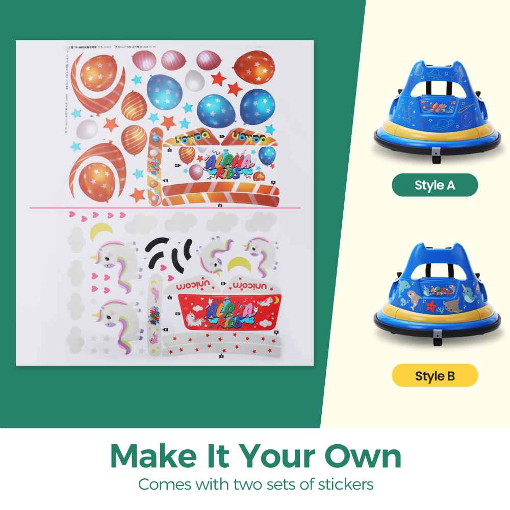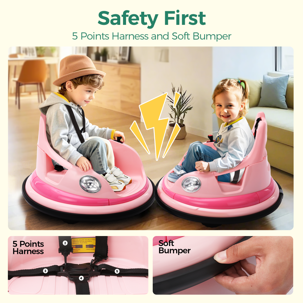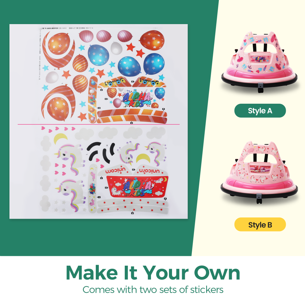 Bring home the thrill of the carnival with this 12V electric bumper car, designed for toddlers and young kids. With 360° spinning action, dual operation modes, and colorful DIY stickers, this ride-on car delivers endless fun while keeping safety a top priority — making it a perfect holiday gift.