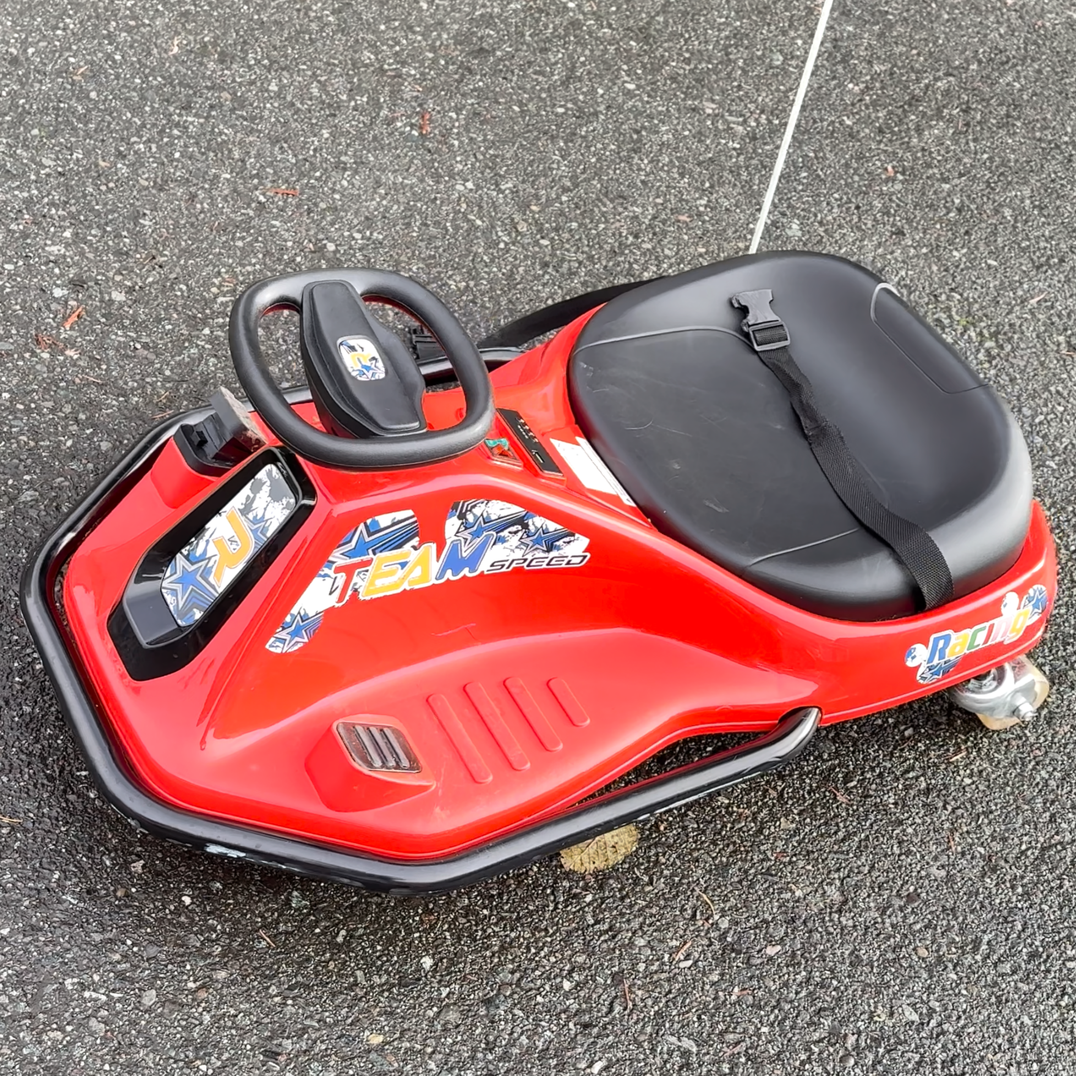 Unleash the ultimate ride for young adventurers aged 3 and up! The Drift Kart combines certified safety with thrilling performance. Powered by a 24V rechargeable battery, it hits a top speed of 9.3 MPH and features dazzling LED wheels with built-in Bluetooth music. Whether drifting outdoors or cruising indoors, it's the perfect gift to spark joy, confidence, and endless excitement.