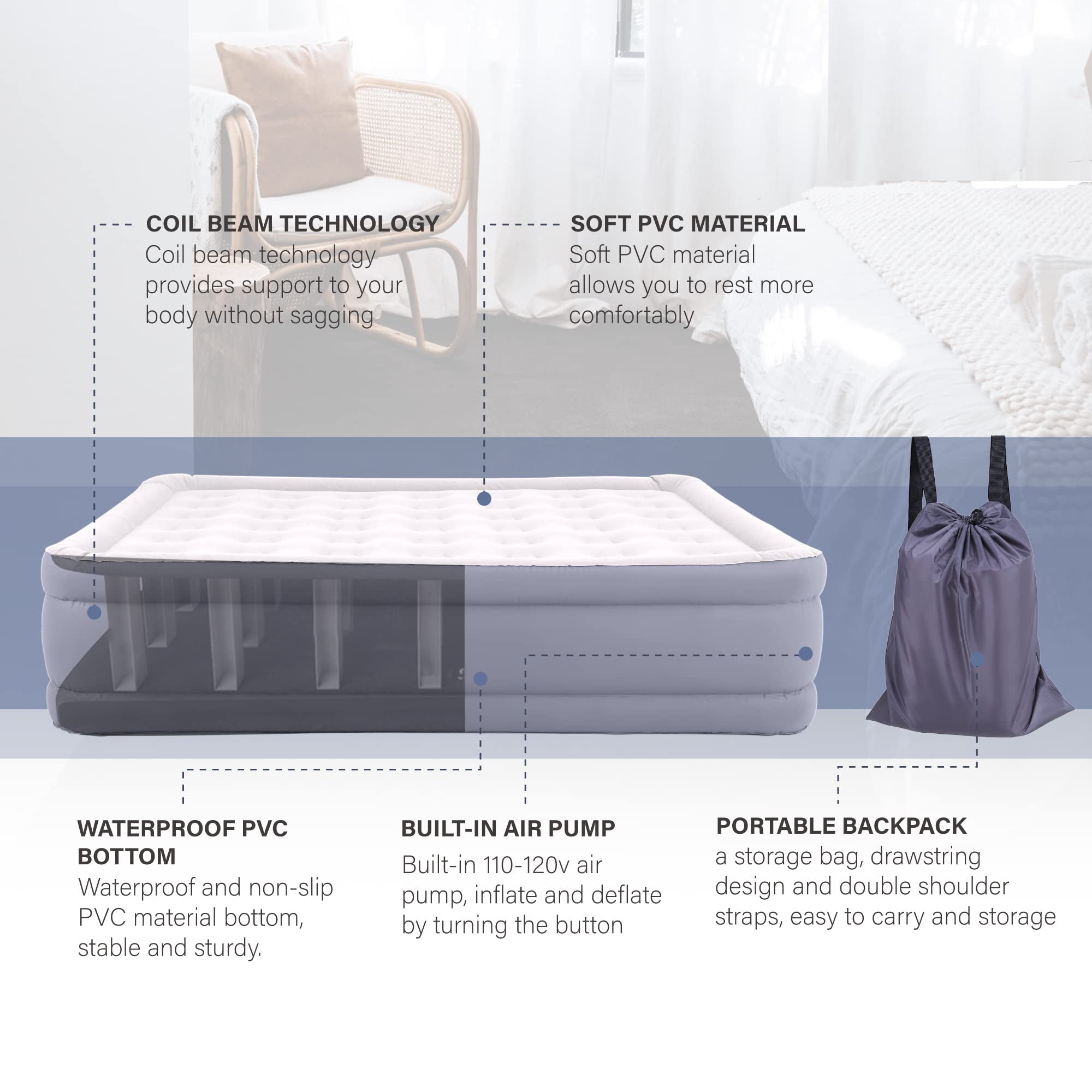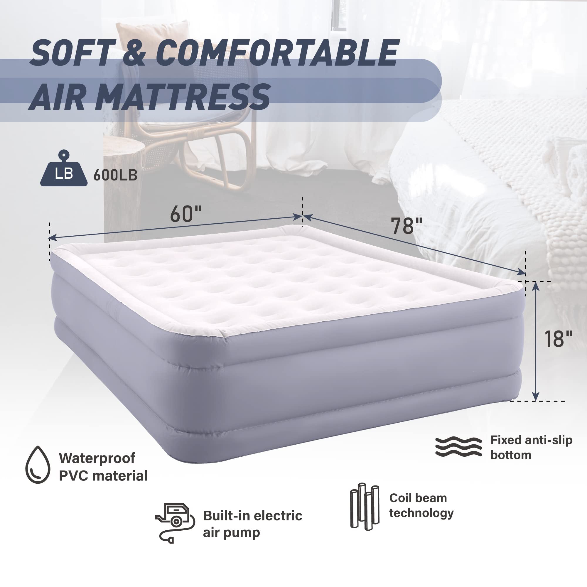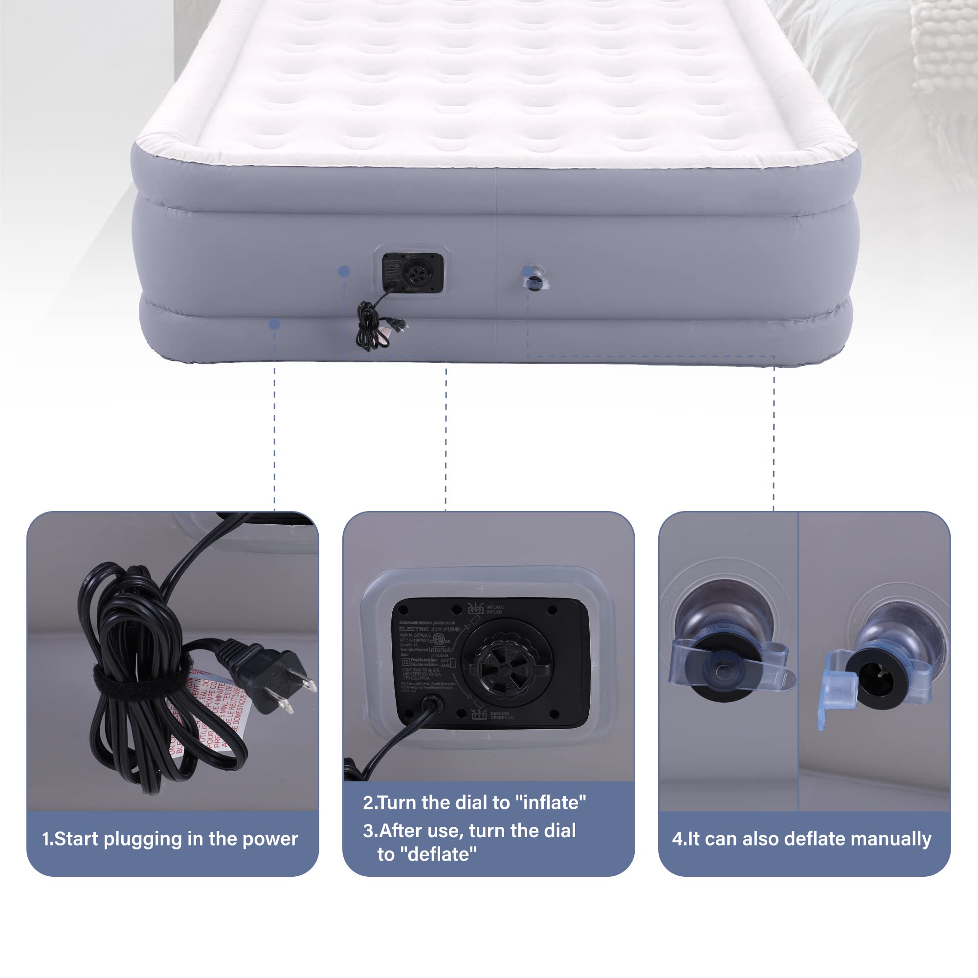 Experience the ultimate comfort of our upgraded Twin Size Air Mattress, designed to provide strong support and stability for a perfect night’s sleep—no worries about tipping over or collapsing. Enjoy the cloud-like plush surface that gently cradles your body and relieves pressure points, making it ideal for both play and rest. With its built-in electric pump and convenient storage bag, this mattress inflates in under 2 minutes and is easy to store and carry, making it the perfect choice for hosting guests, camping trips, or setting up temporary resting spots.