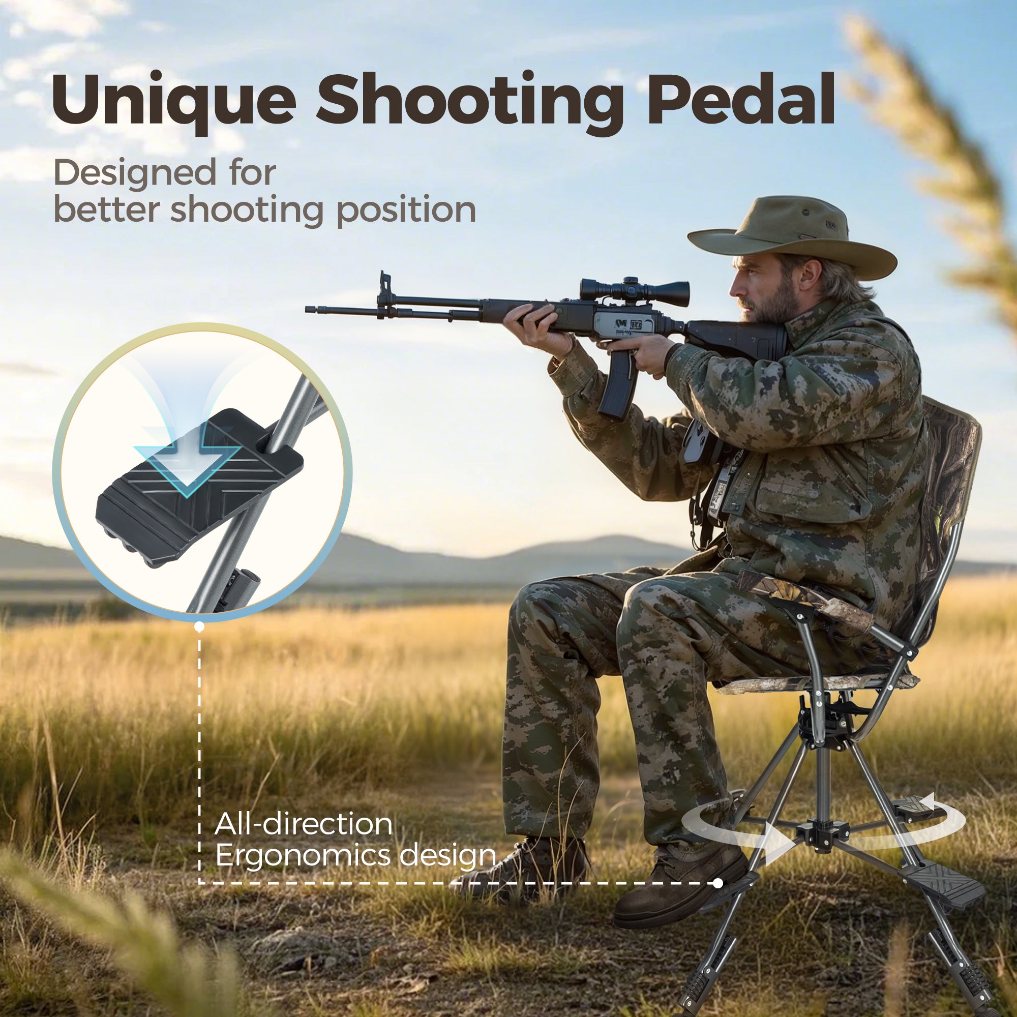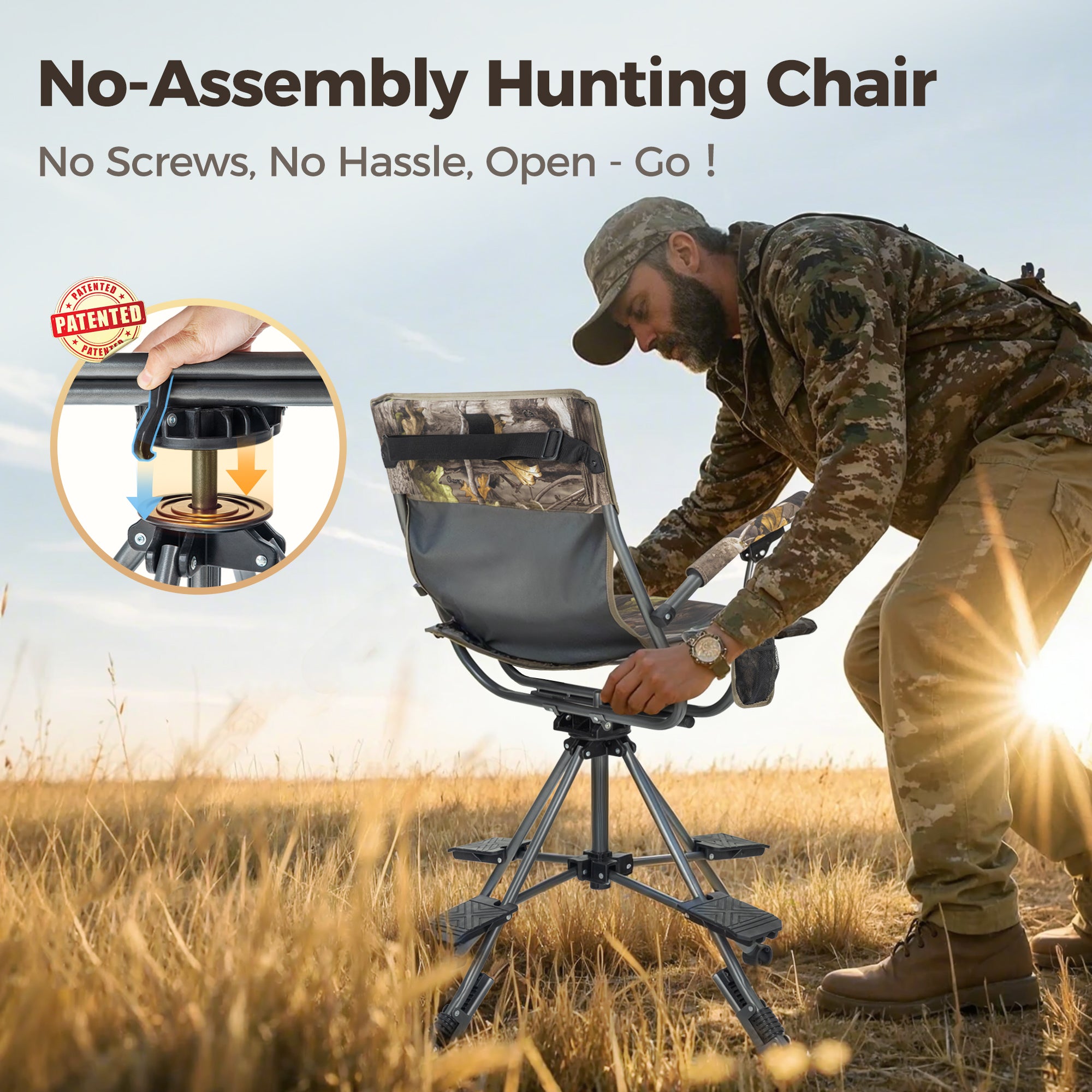 This 360° Swivel Hunting Chair is the perfect blind hunting chair for hunters who value comfort, stability, and quick setup in the field. Designed to blend into your surroundings, this hunting chair keeps you ready for action without spooking your target. Its innovative design also makes it an ideal blind chair for long hours in a tree stand or ground blind.
