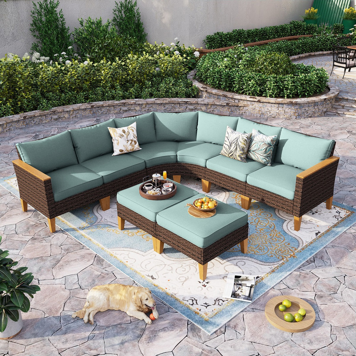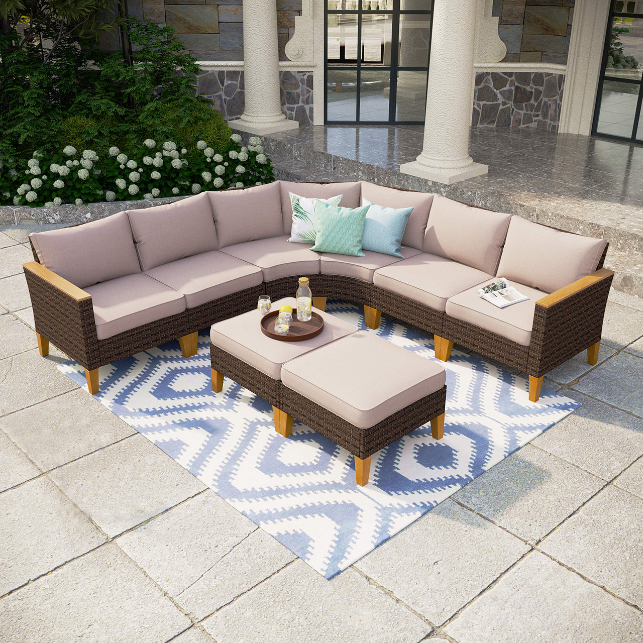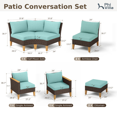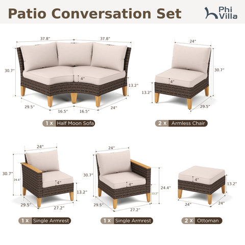 Set Includes: 2 x Half-moon Curved Sofas + 2 x Armless Sofas + 2 x Ottomans (3 packages)