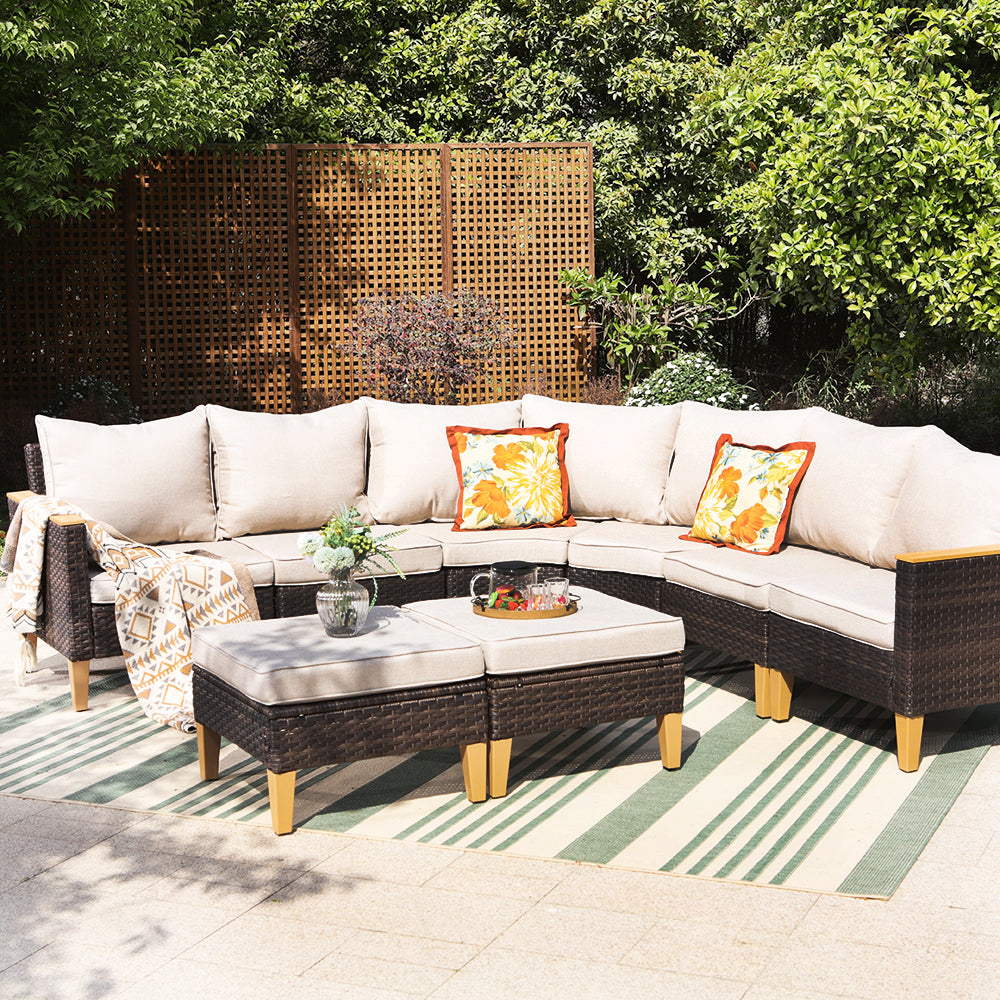 Material: steel frame; PE rattan; polywood; 220g Olefin fabric; 28D Phenolic-free spong