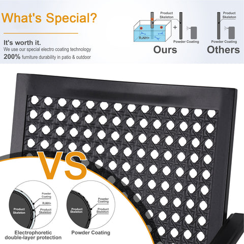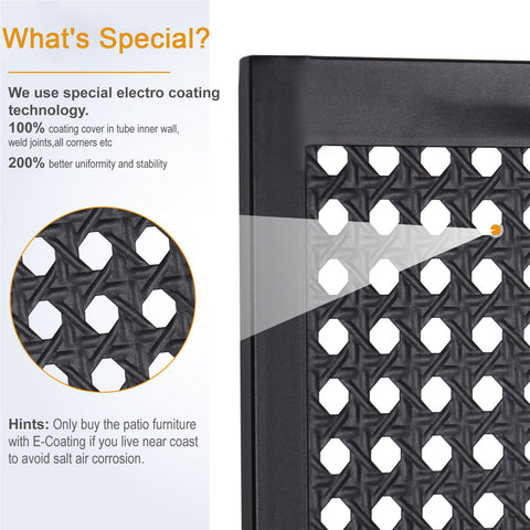 Detail:Durable powder-coated heavy-duty metal frame needs no special maintenance. It's anti-rust and weather resistant, therefore the cleaning will be quite simple. Perfect for indoor rooms, outdoor garden, patio, porch, and yard. (We recommend our customers use waterproof furniture covers to help the set stands longer.)