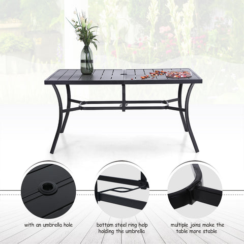 With Umbrella Hole: The table can hold an umbrella whose pole diameter measures 1.57"~1.9" with the bottom hole that helps to fix the umbrellas in a position that fits most umbrellas. (You could use an umbrella weight to help if your umbrella pole is thin.)