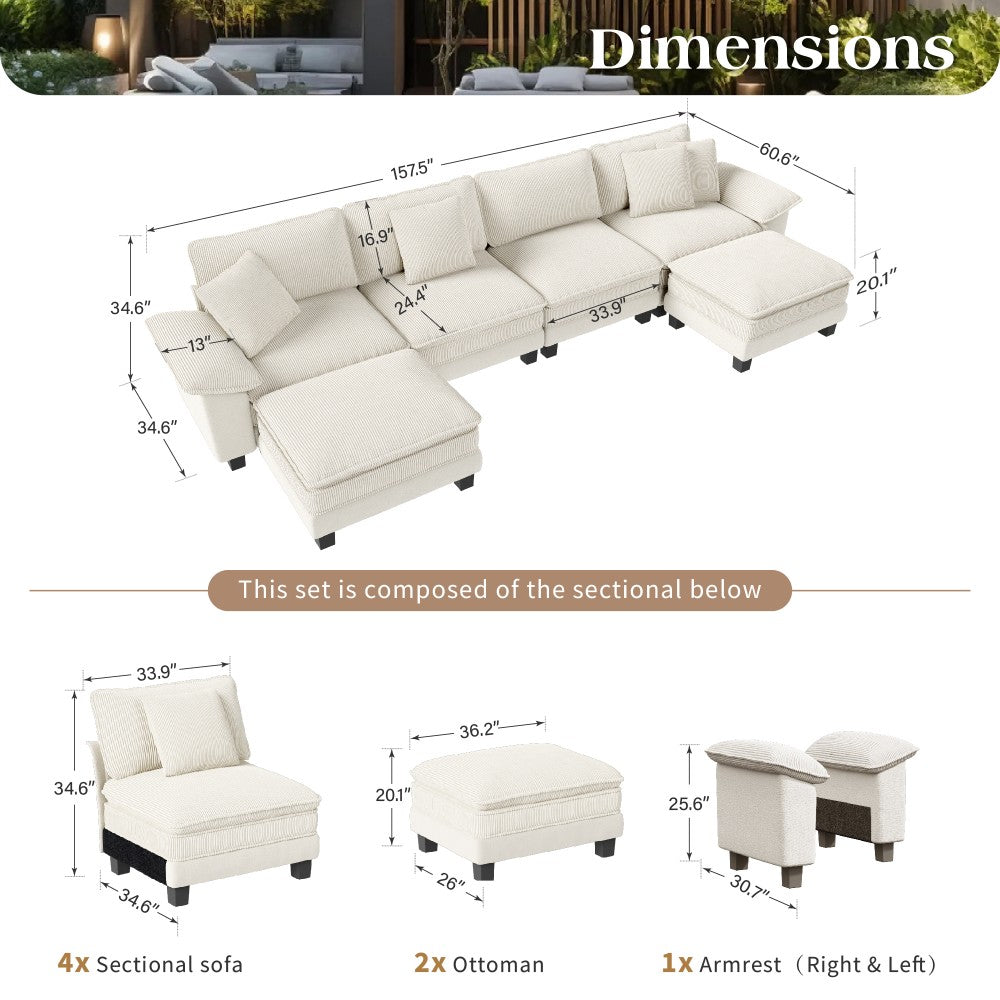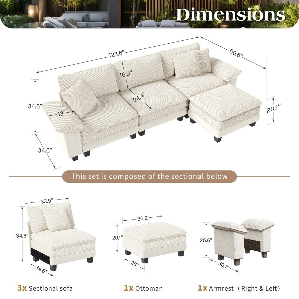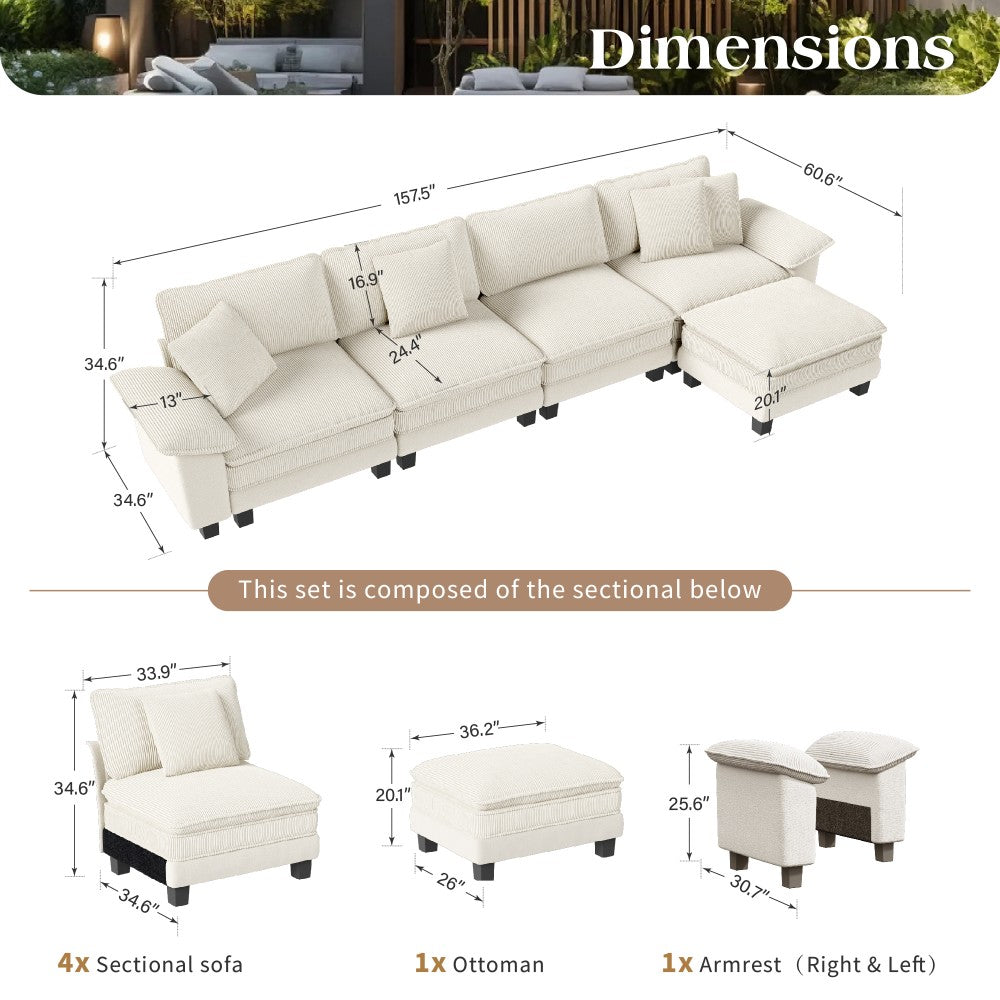 Upgrade your living room with this modern modular sectional sofa, combining cozy comfort with versatile elegance. Designed to adapt to your lifestyle, it features a unique fabric blend of soft chenille and functional corduroy—perfect for homes that value both style and comfort. Whether you prefer a classic sofa or a spacious sectional, this modular design offers flexible layouts to fit your space beautifully.