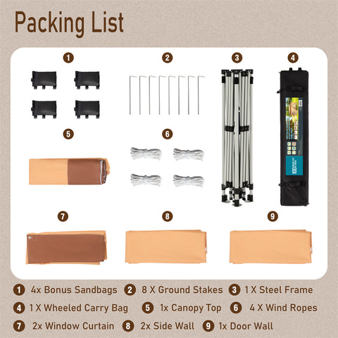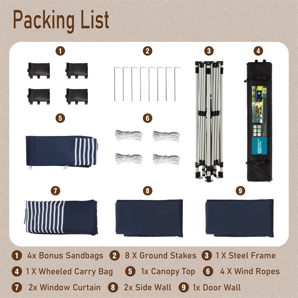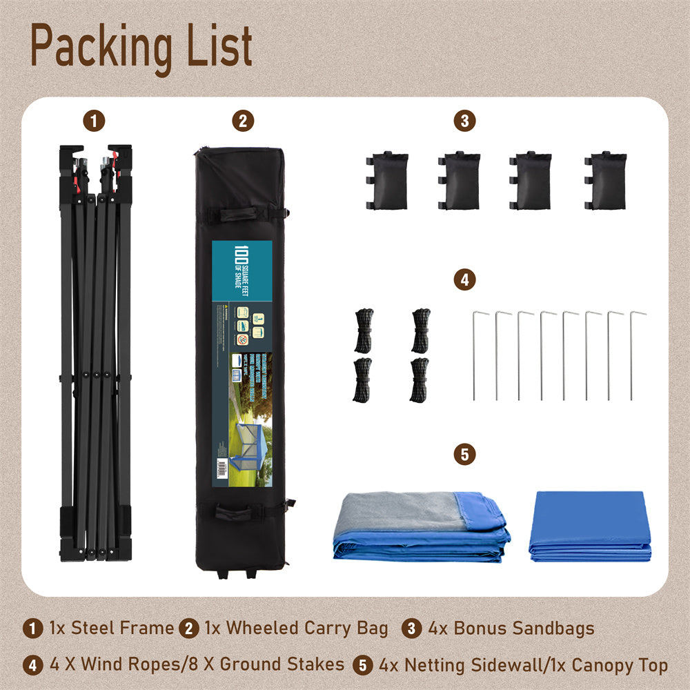 PHI VILLA 10'x10' Pop-up Tent with Vents Top for Camping Party and Barbecue