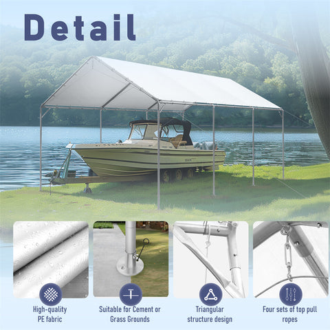 PHI VILLA 12x20 ft Carport Replacement Top Canopy Cover for Car Garage Shelter Tent Party Tent