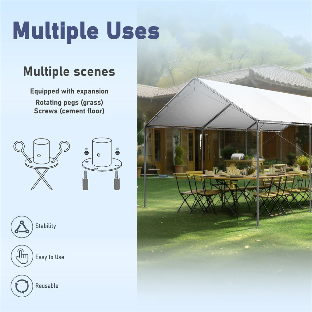 Revamp your outdoor area with our durable carport, ensuring waterproofing and sun protection. From a reliable shelter to a chic party tent, adapt it effortlessly for various occasions. Elevate your outdoor experience with this adaptable must-have!