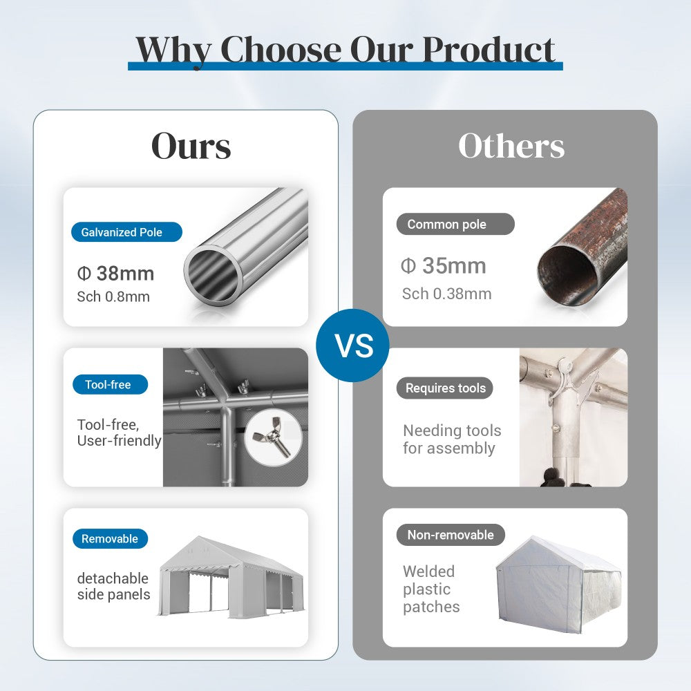 Transform your vehicle storage with our robust carport, designed for exceptional durability and stability. With effortless access and versatile opening options, this carport provides a reliable shelter that adapts to your needs while offering peace of mind against the elements. Enjoy the convenience and security of a well-constructed space that enhances your outdoor environment.