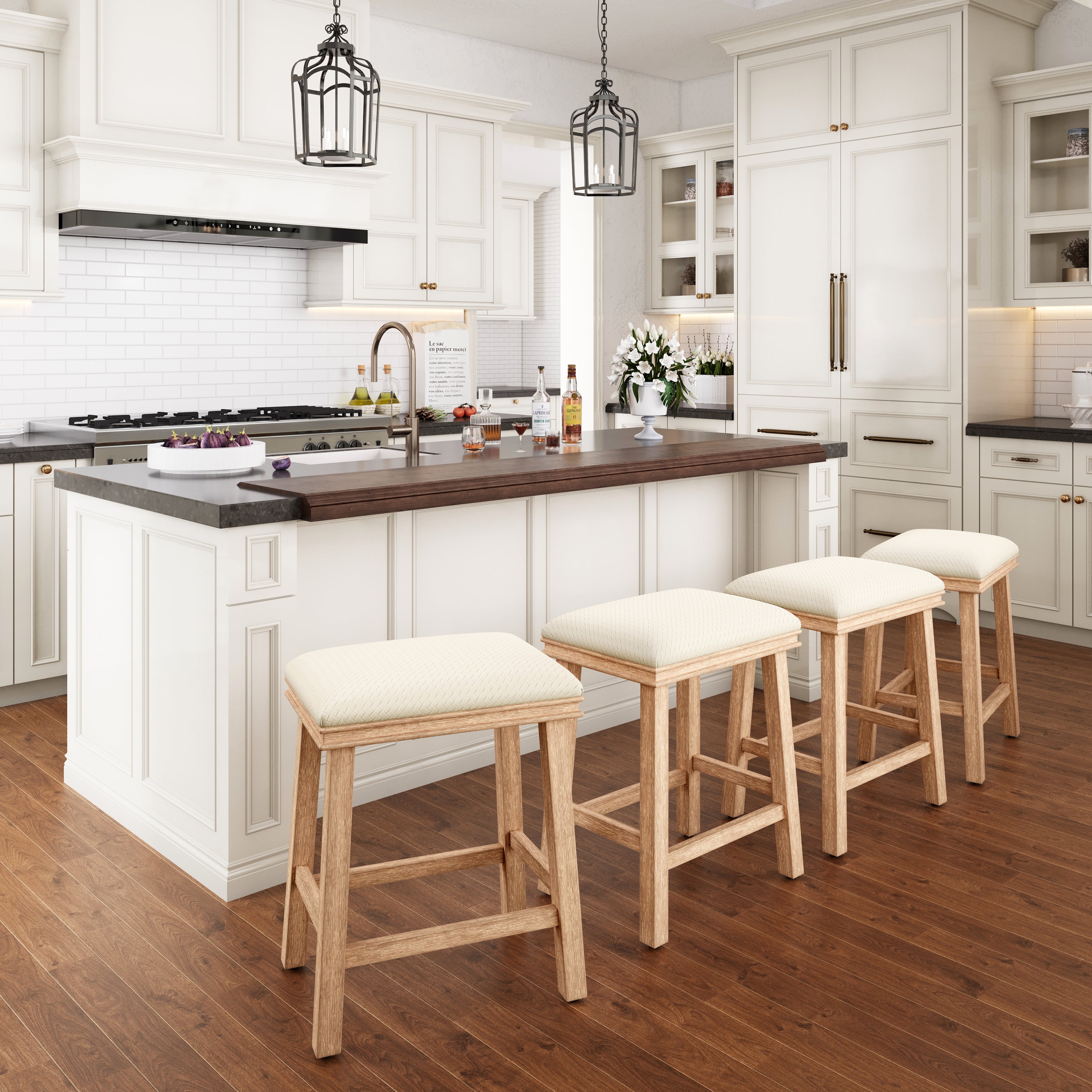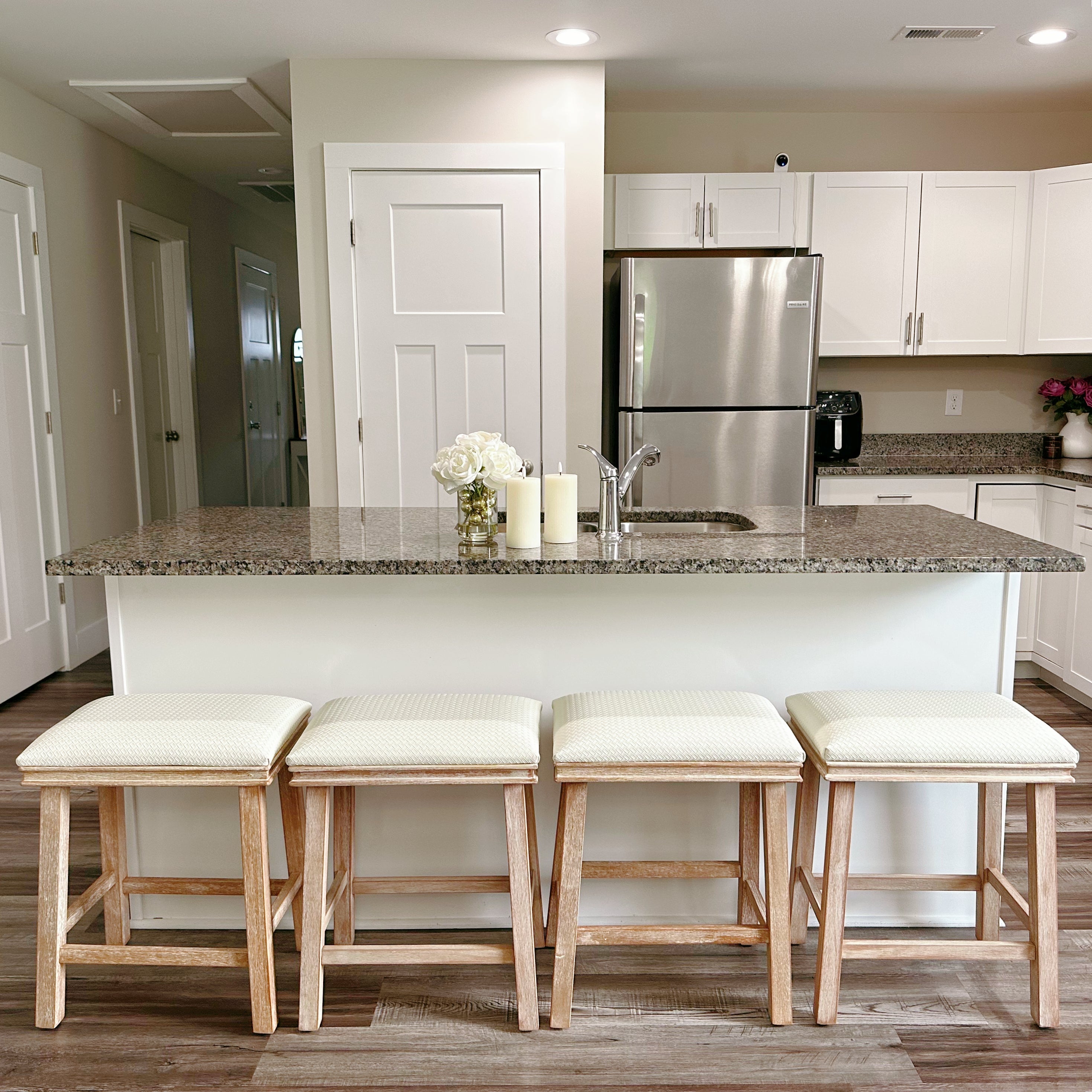 Bring modern simplicity and everyday comfort to your home with this 4-piece set of backless counter-height bar stools. Designed with soft faux leather, high-resilience foam, and a sturdy solid wood frame, these stools blend style with durability. Their 24-inch height makes them a perfect fit for countertops ranging from 34 to 38 inches, while the compact backless design allows easy storage under the counter when not in use. Ideal for kitchens, dining areas, or home bars.