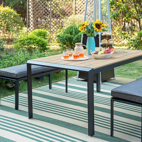 This Set Includes: 1*Rectangle Table & 2*Cushioned Benches (This set will be divided into 2 packages.)