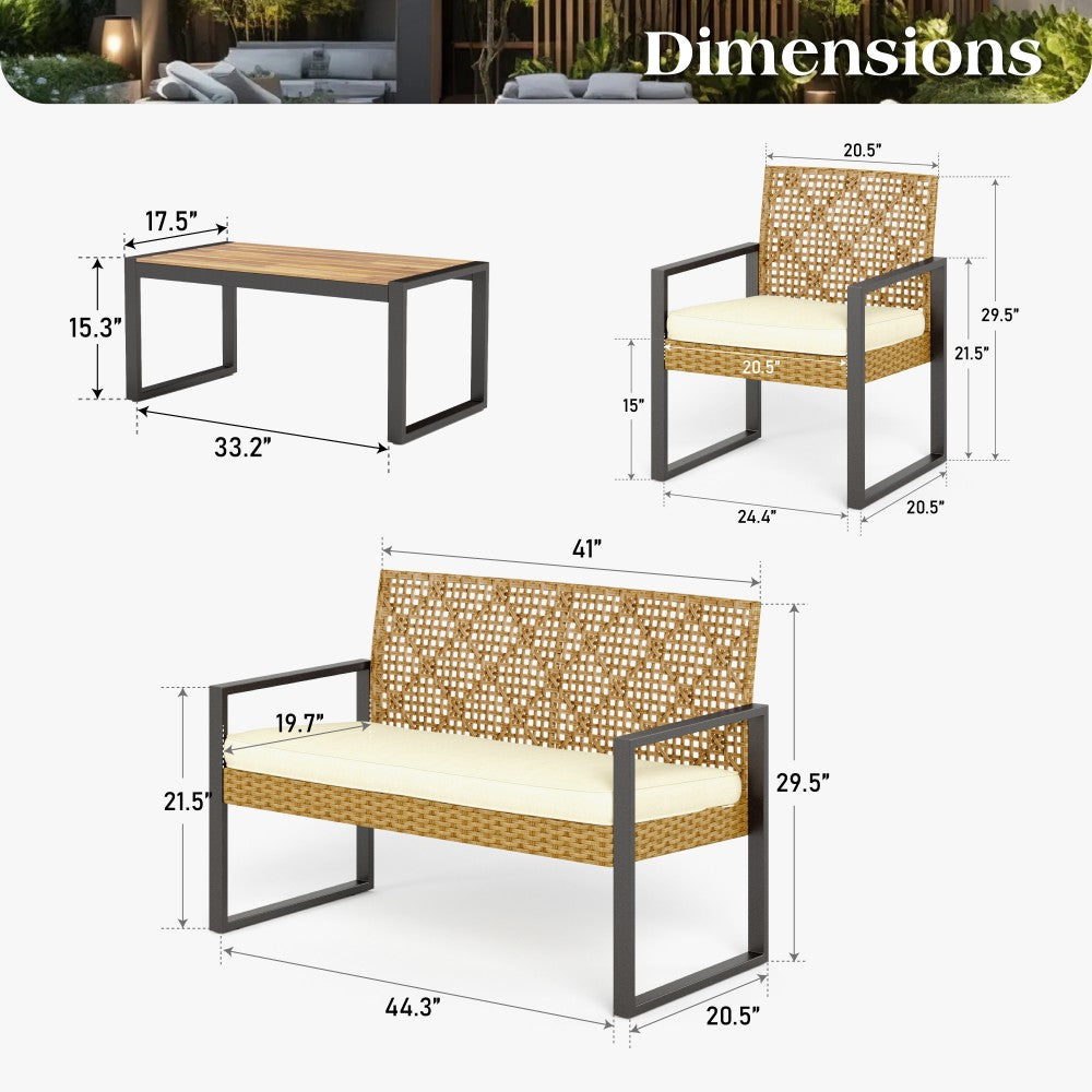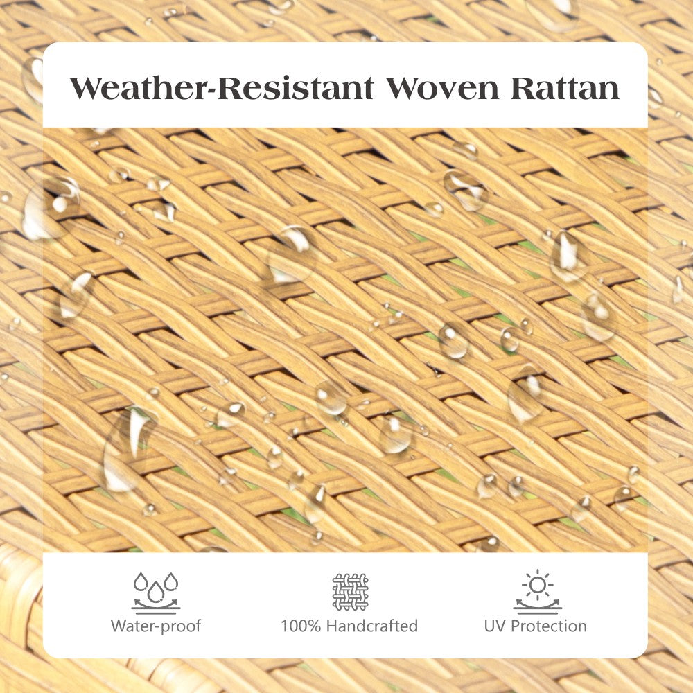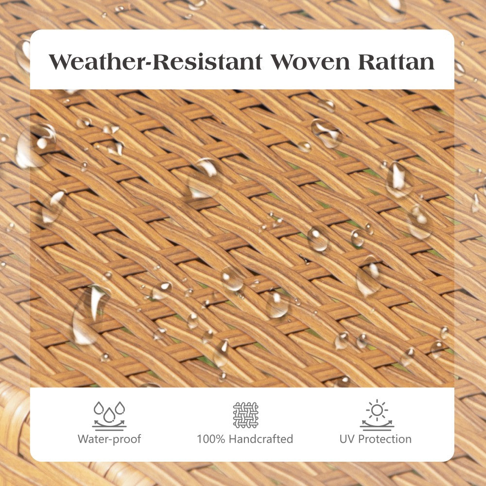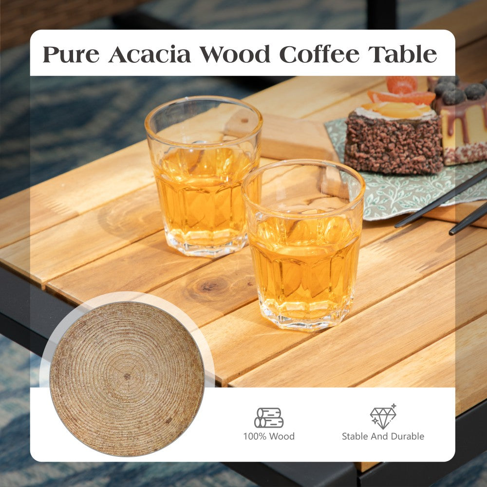 Material: PE Rattan, Acacia Wood, Powder-coated Steel Frame