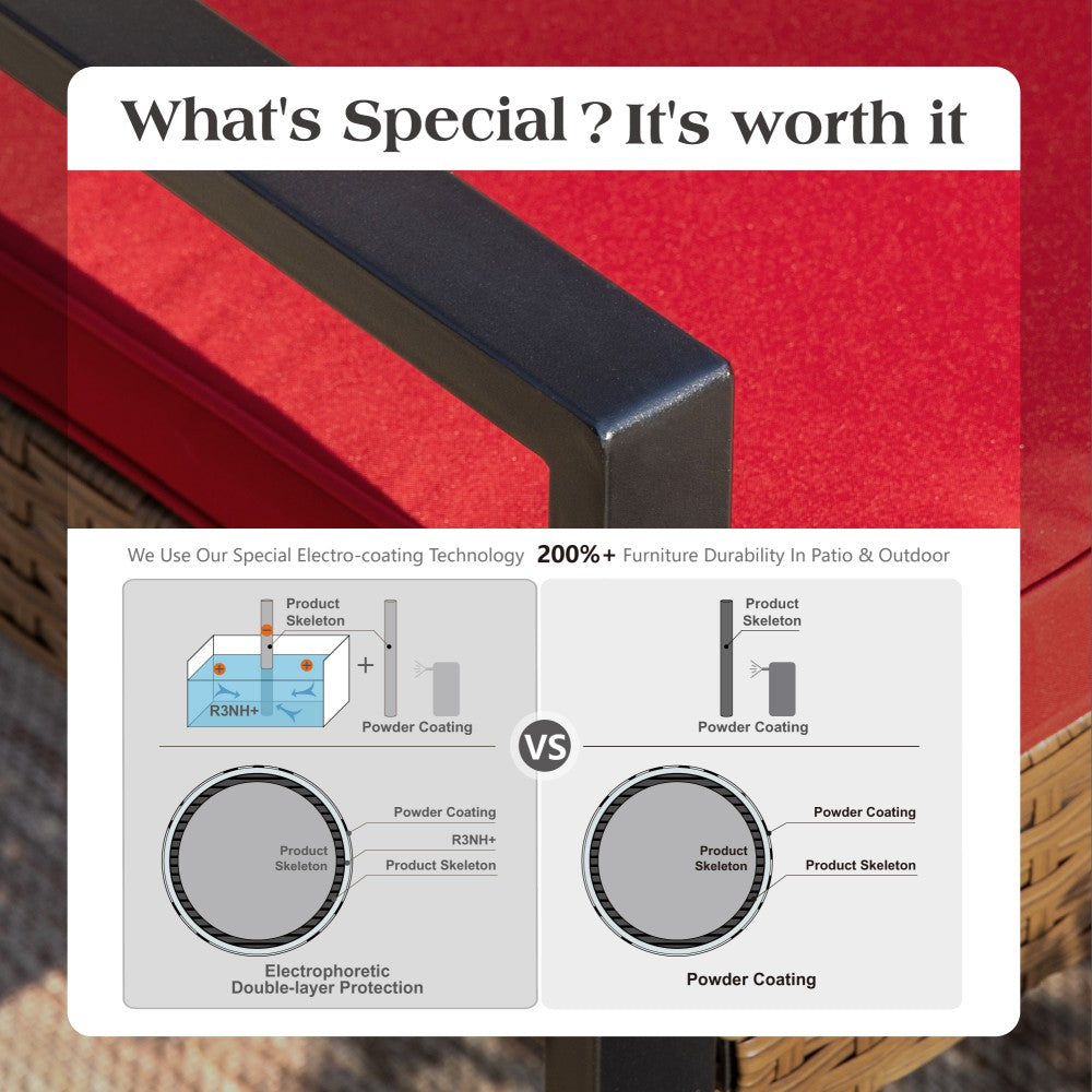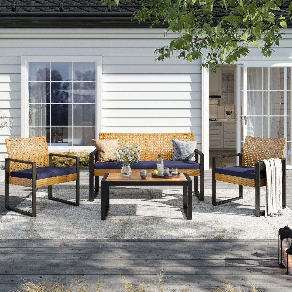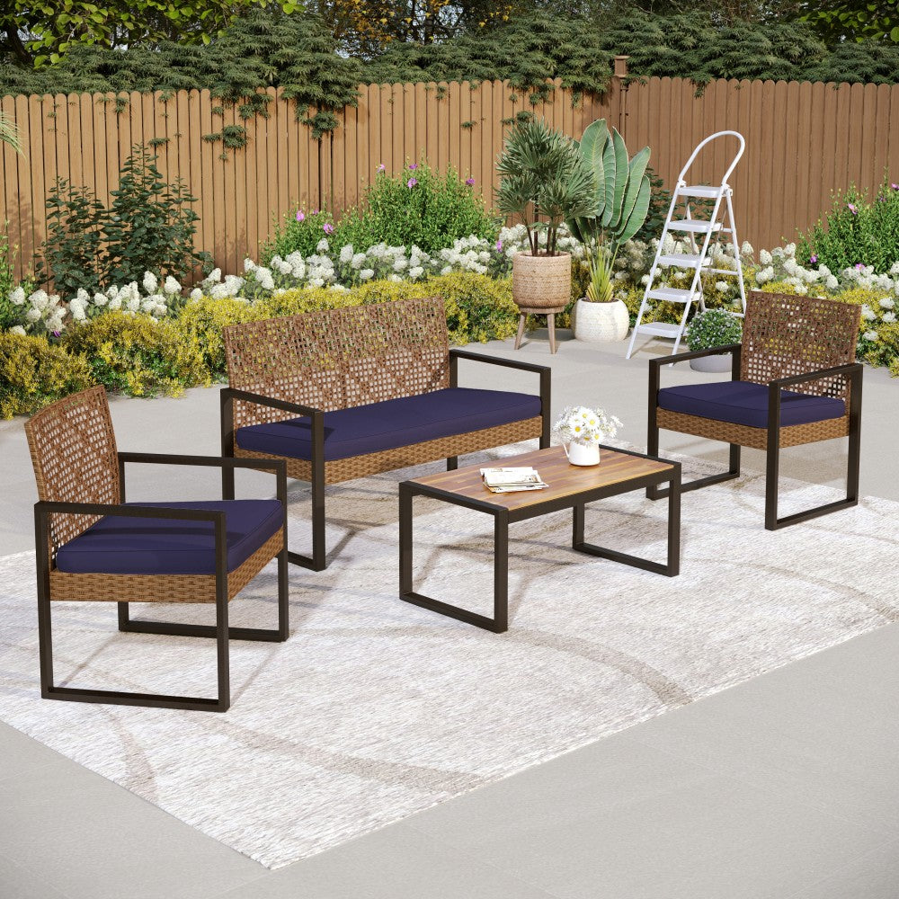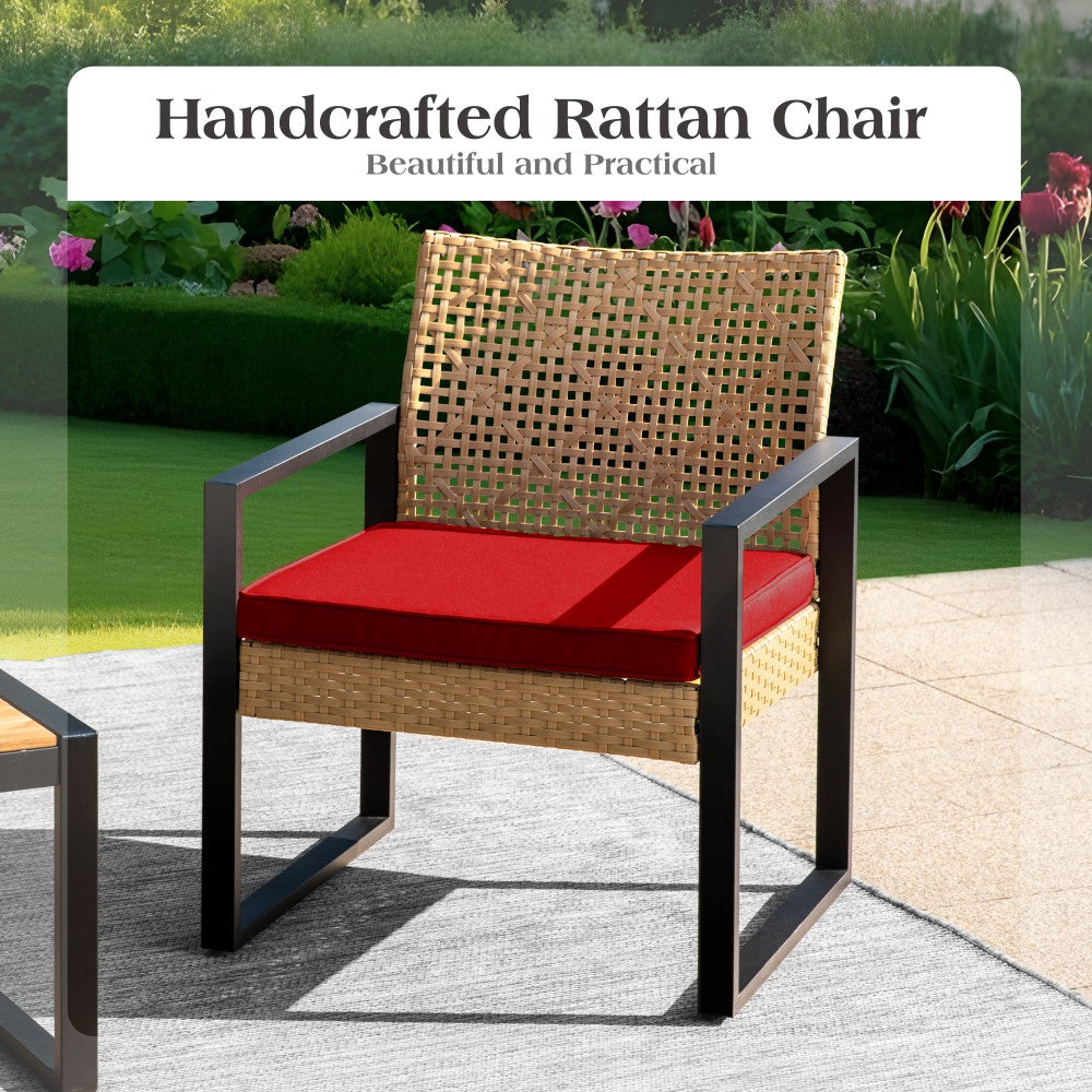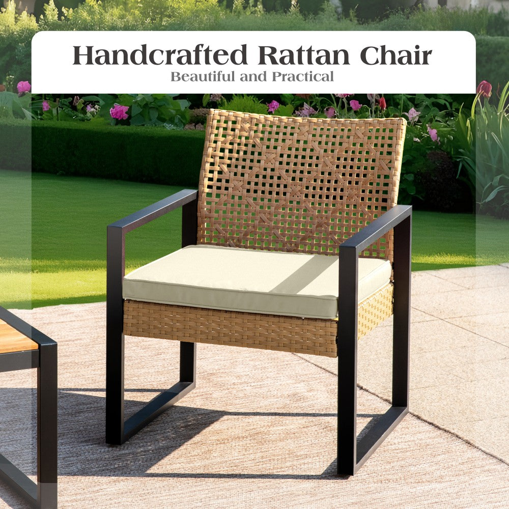 Material: PE Rattan, Acacia Wood, Powder-coated Steel Frame