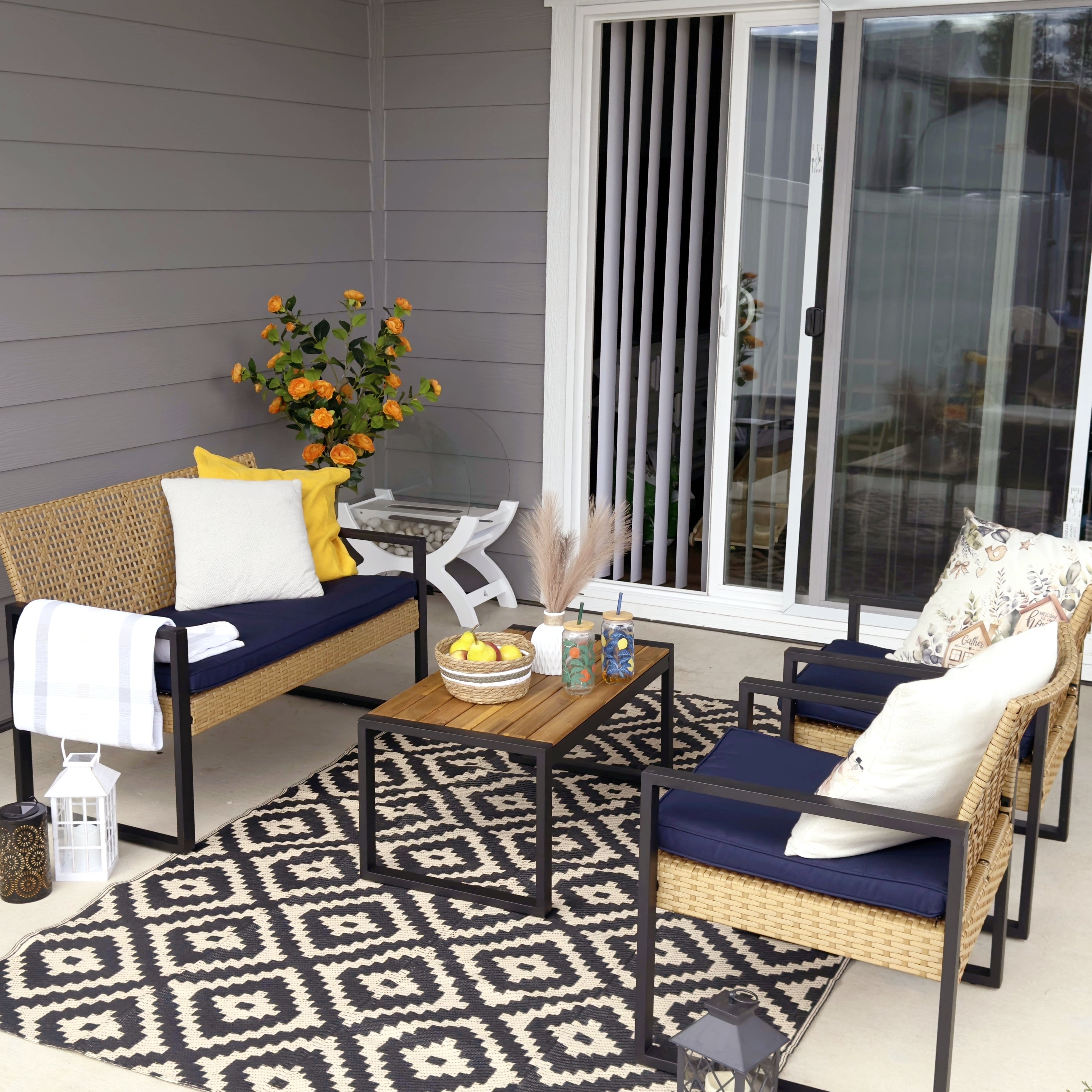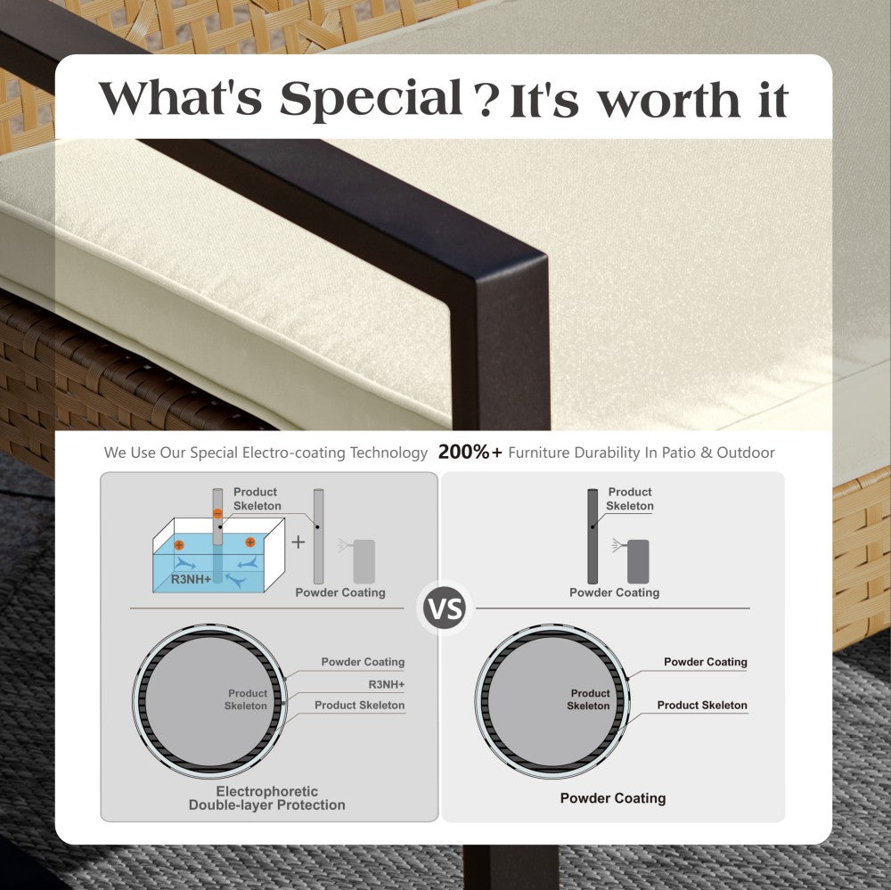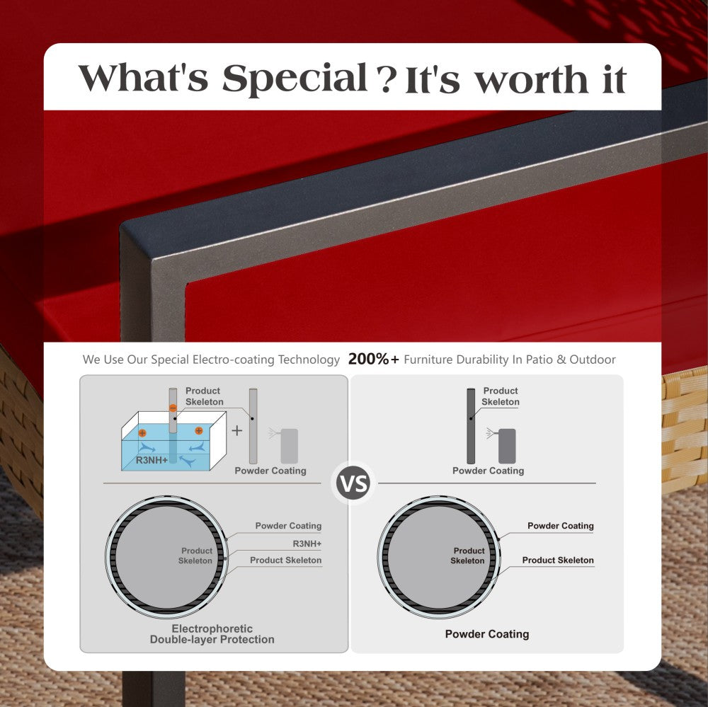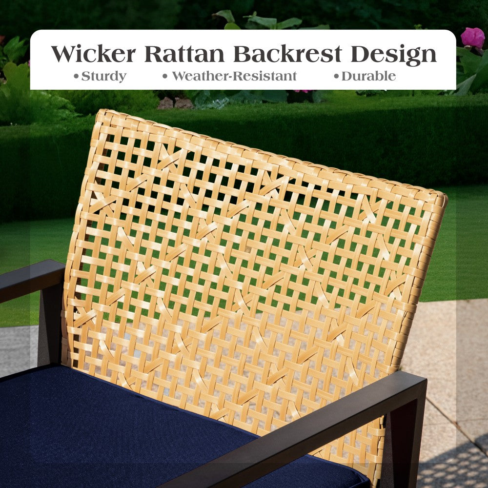 Material: PE Rattan, Acacia Wood, Powder-coated Steel Frame