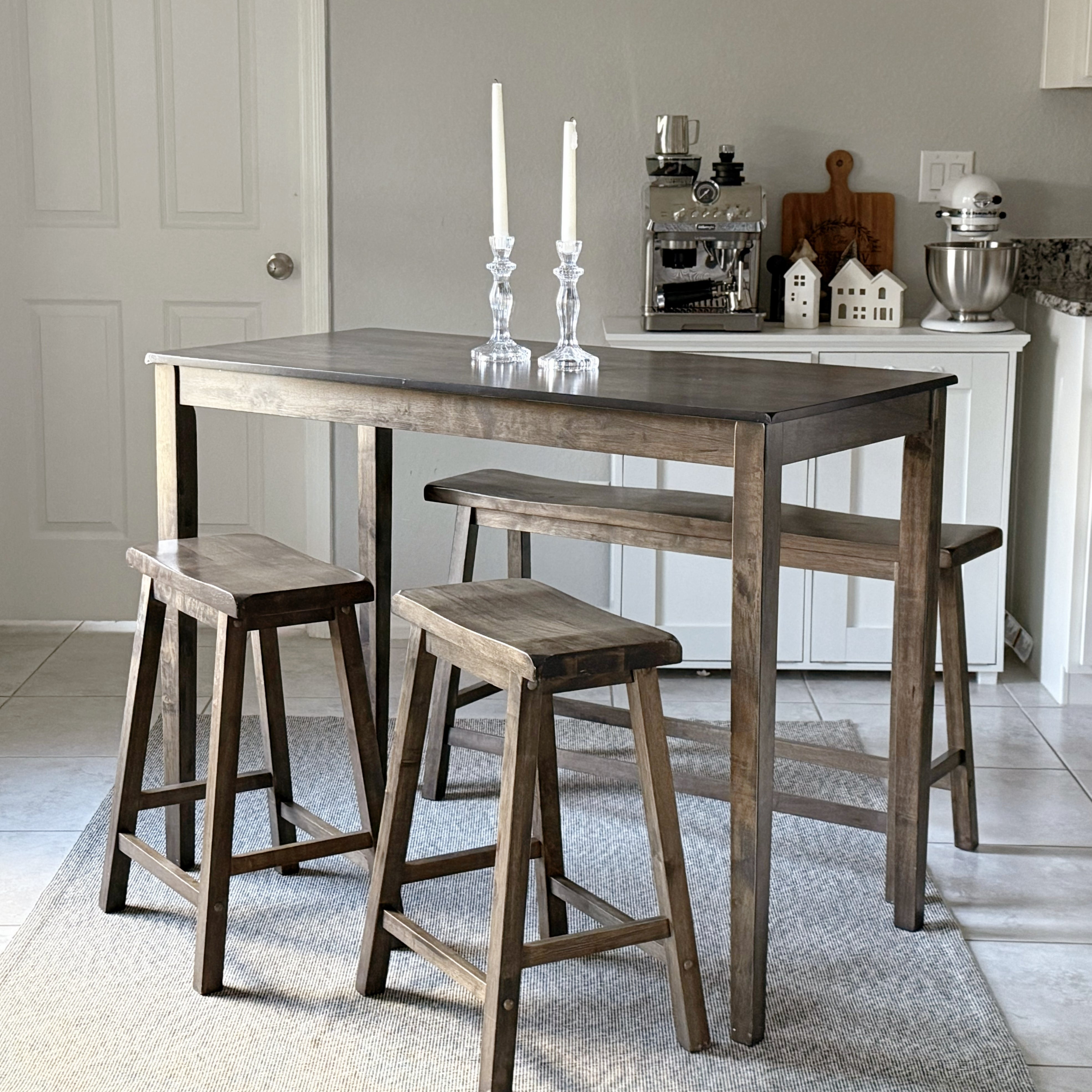 Bring warmth and functionality into your home with this 4-piece bar table set. Designed for family gatherings and everyday meals, it combines solid wood durability with a space-saving build that fits perfectly into kitchens, dining rooms, or small apartments. With its timeless mid-century style and comfortable seating, it’s the ideal spot to share food, laughter, and moments together.