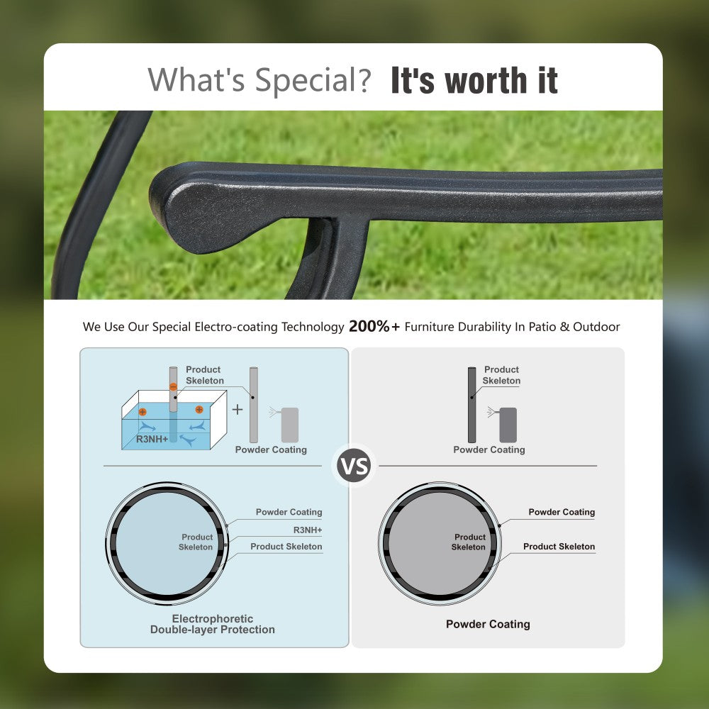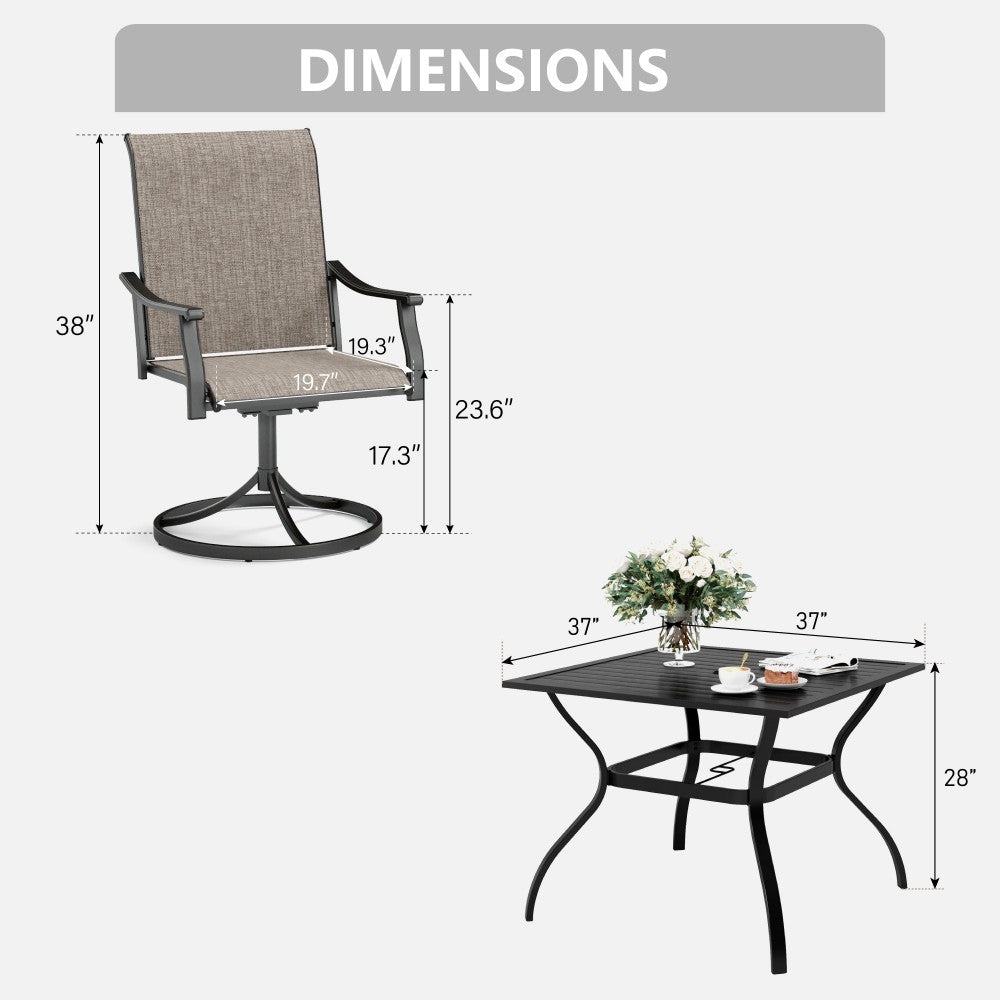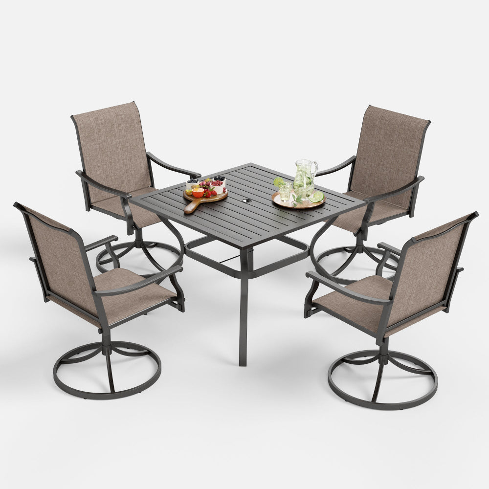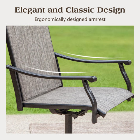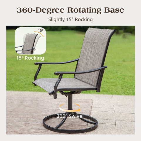 Enhance your outdoor dining area with this 360-degree swivel chair dining set. Thoughtfully crafted for comfort and resilience, it’s the perfect addition to create an inviting space for relaxation, entertaining, and enjoying delicious meals with loved ones.