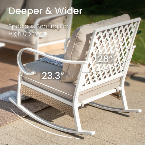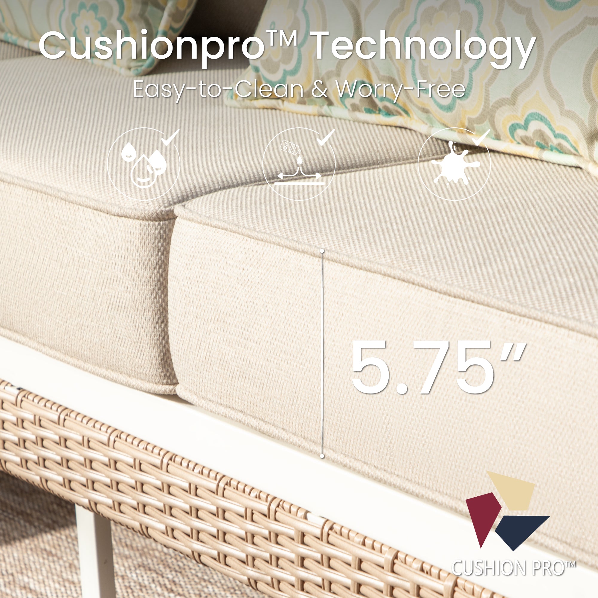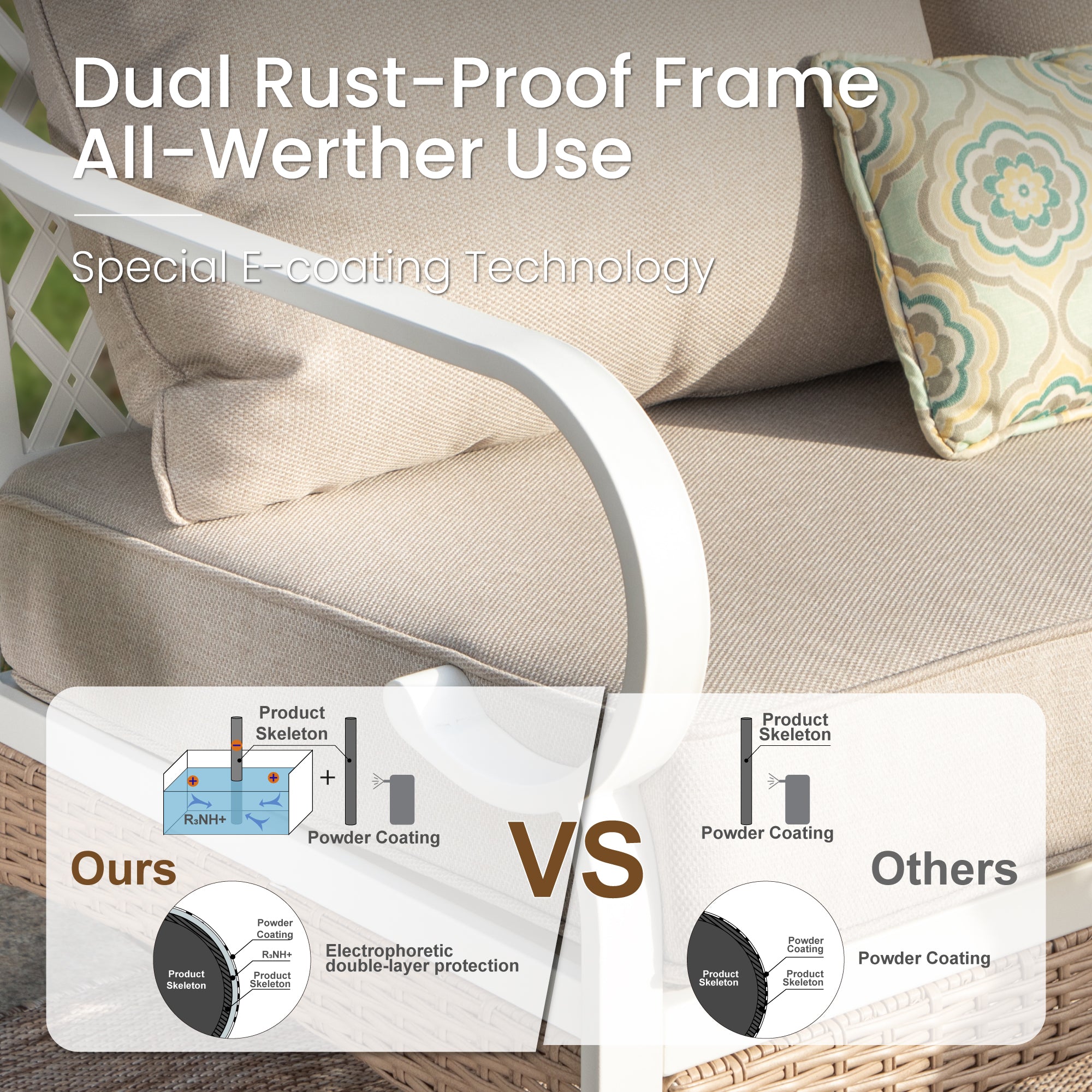 Material: Powder-coated Steel Frame; CUSHION PROTM fabric; WICKER KINGTM rattan