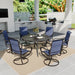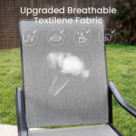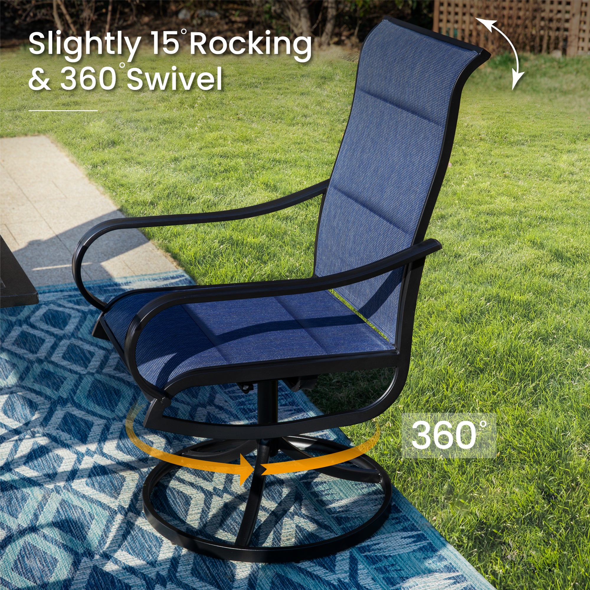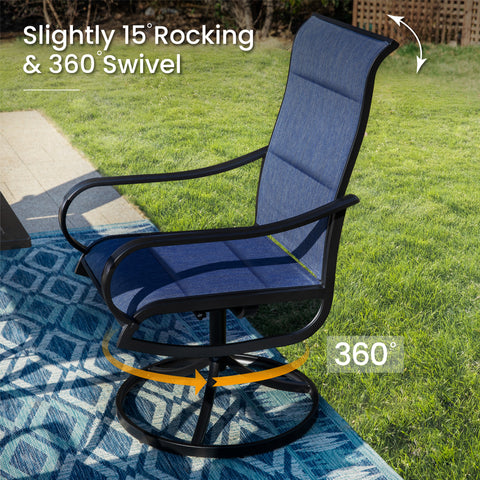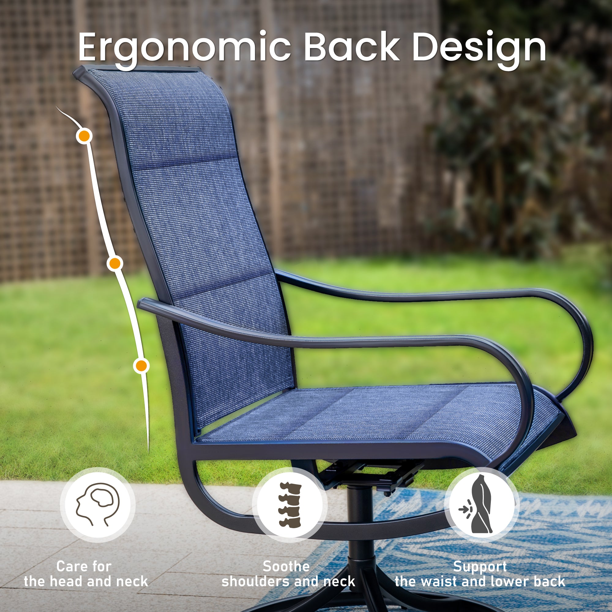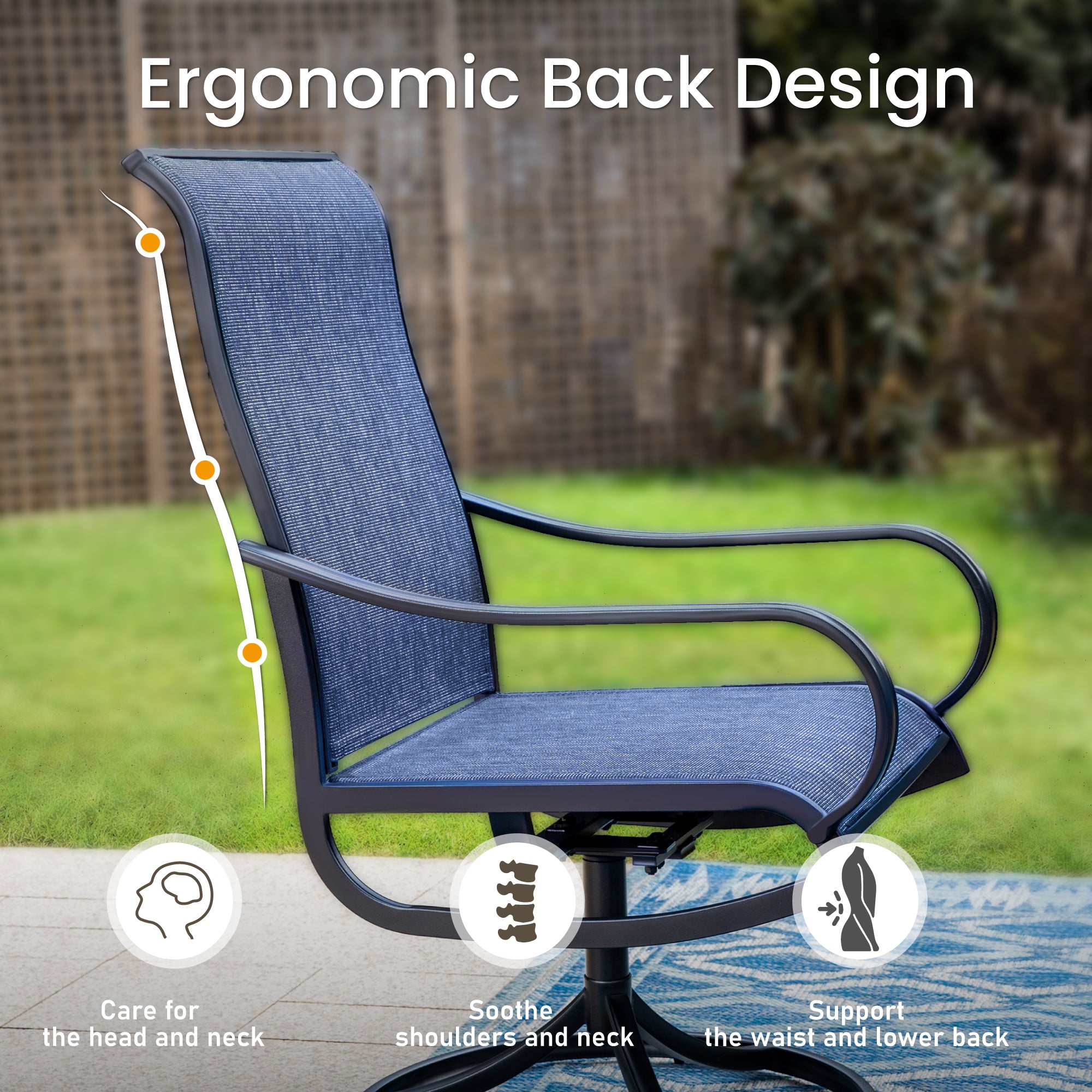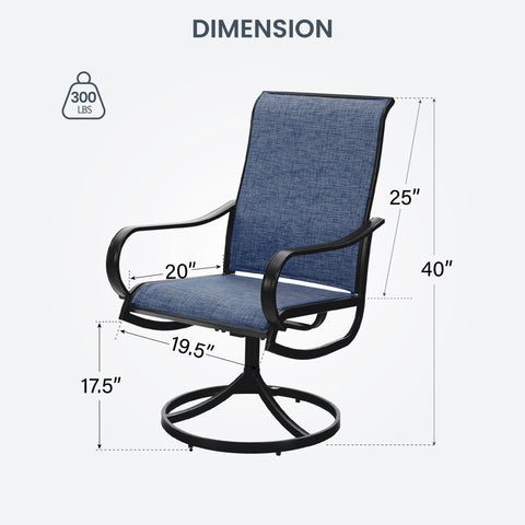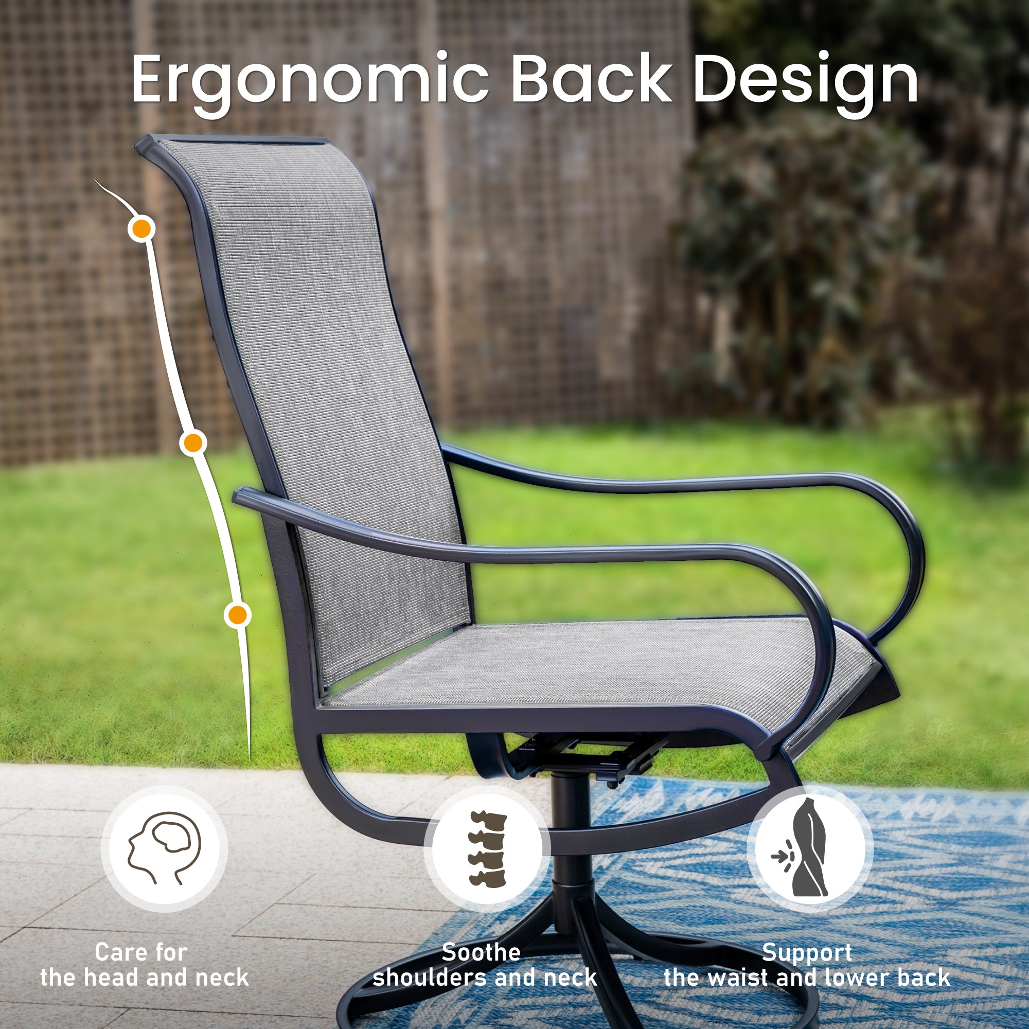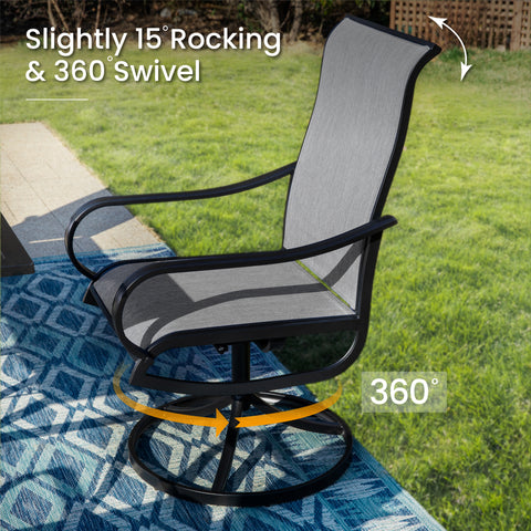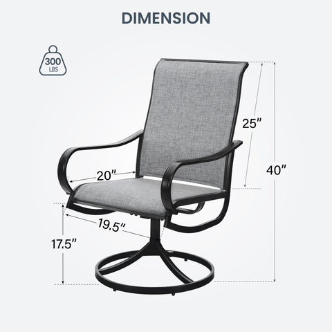 This patio dining set includes a beautifully designed textilene chair and a powder coated table. The chair swivels 360 degrees, the round table design facilitates communication between diners, and the lack of sharp corners ensures everyone's safety, especially for families with small children. This dining table and chair set is not only a practical choice, but also a stylish addition to your home.