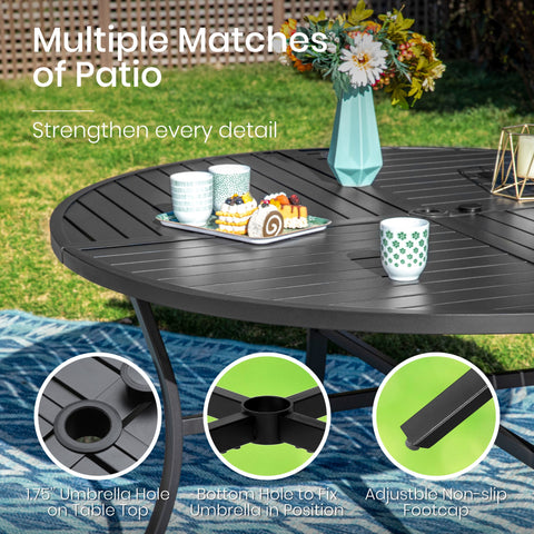 Table:Diameter 54";Height 29";Diameter of umbrella hole:1.75"
