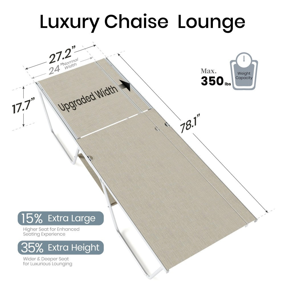 Enjoy ultimate outdoor relaxation with this Extra Large Chaise Lounge Chair. Designed with a sleek, minimalist frame that fits seamlessly into any patio, poolside, or garden space, it also allows for practical under-chair storage—keeping your outdoor area tidy and organized.