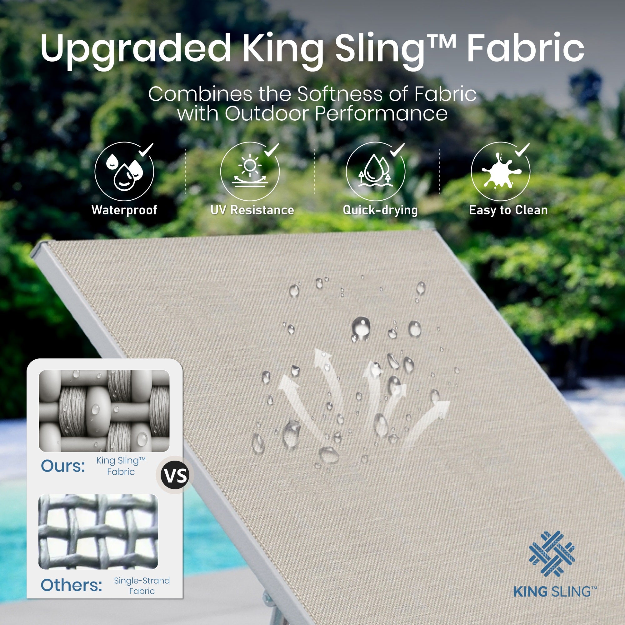 All-Weather KING SLING™ Fabric: Durable, UV-resistant, waterproof, and quick-drying material ensures long-lasting comfort and easy maintenance.