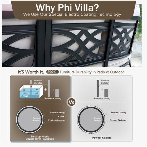 Material: Wicker KingTM rattan; CushionProTM fabric ; E-coating metal
