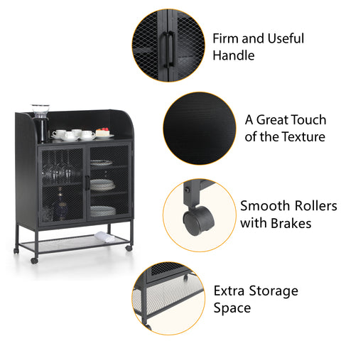 • Extra Storage Space: This kitchen cart has 2 tiers on the left and 3 tiers on the right, including towel rack and wine rack. It can provide enough space to store veggies, bottles, stemware, wine, kitchen tools, etc.