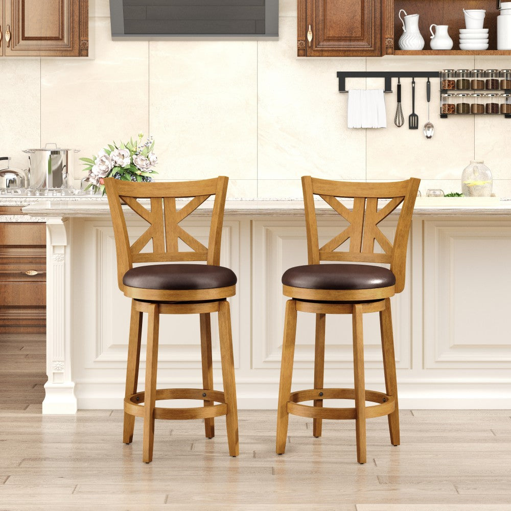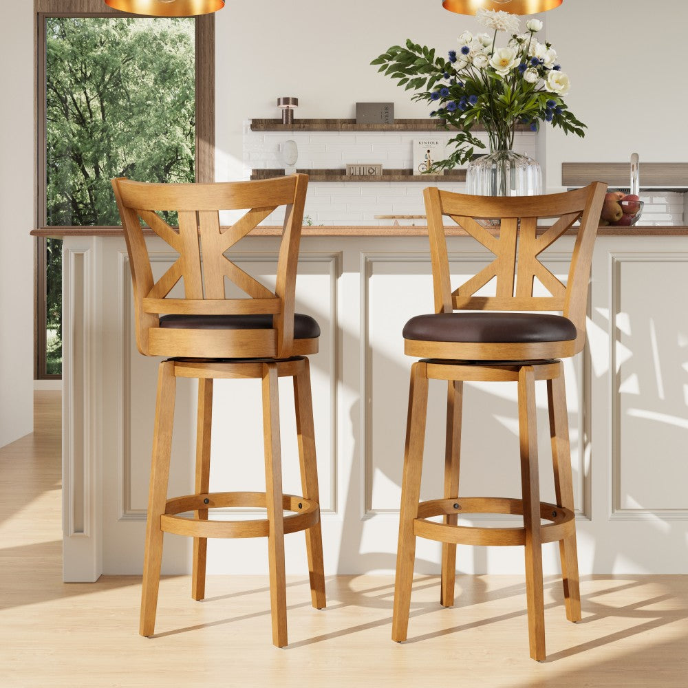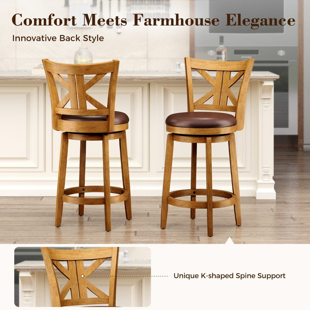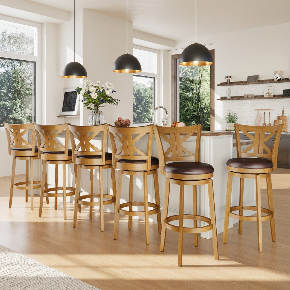 Inspired by timeless farmhouse style, these bar stools combine classic back patterns with modern comfort. The smooth faux leather seat and high-density sponge cushioning deliver a soft yet supportive sitting experience. Available in counter height (24") and bar height (30"), these stools fit seamlessly into kitchen islands, home bars, and dining spaces.