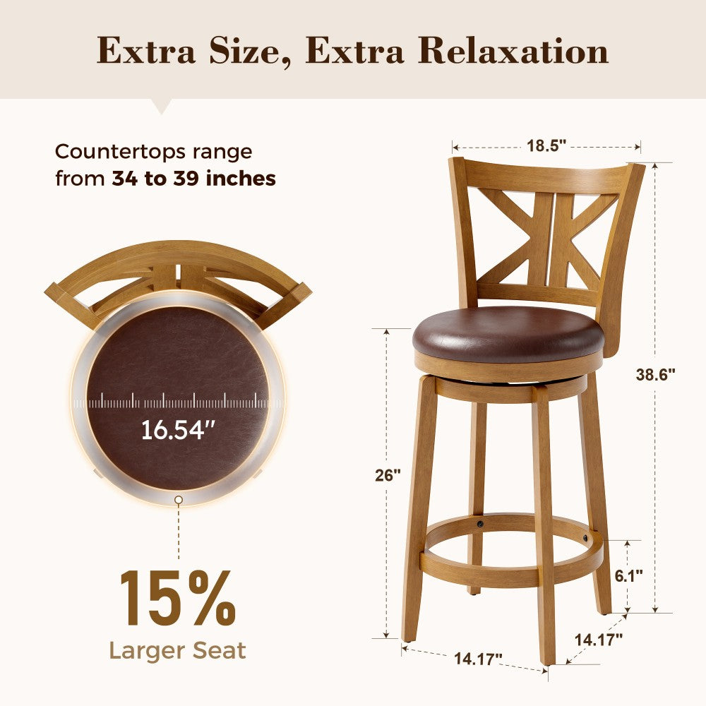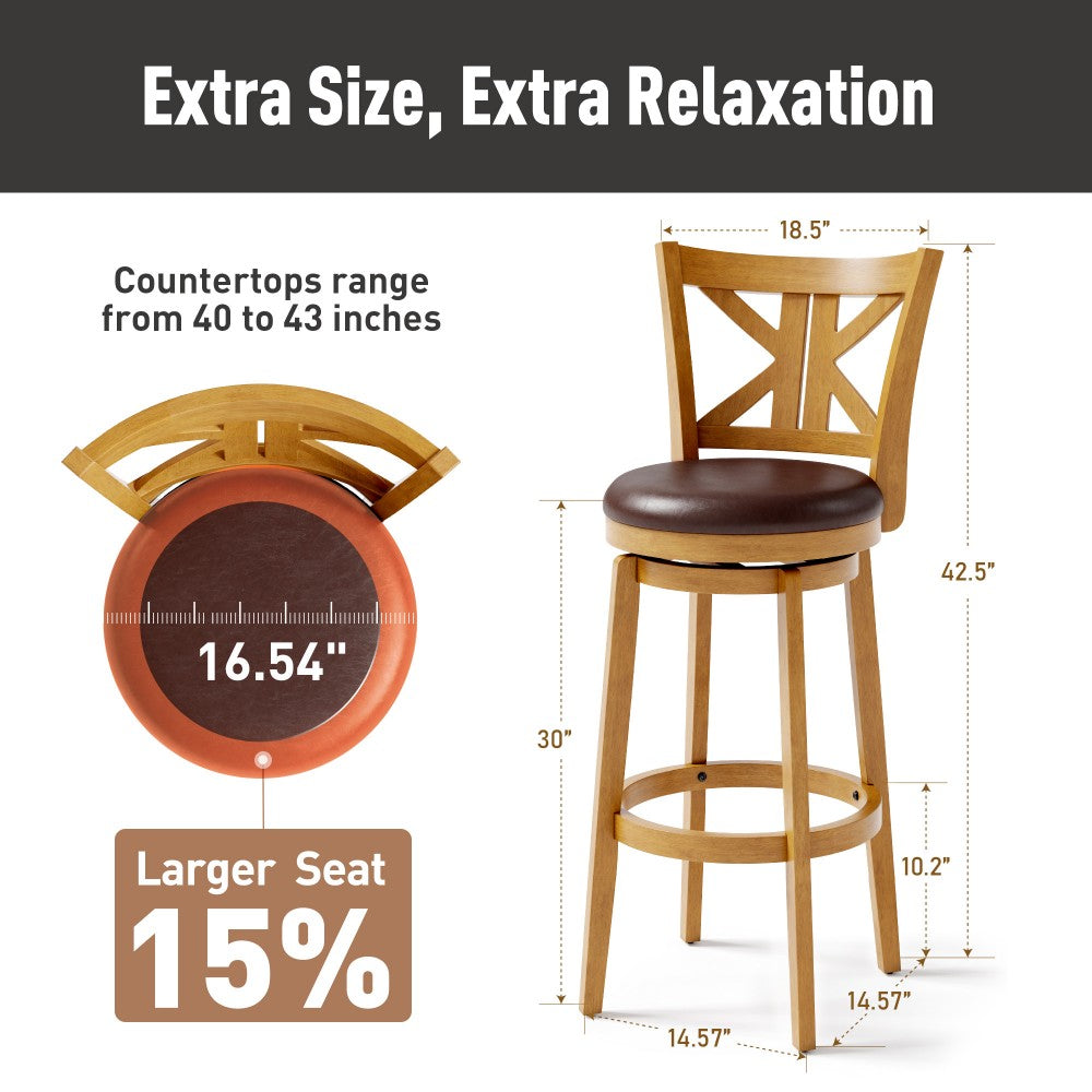 Solid Wood Construction: Built with a 1.6" thick solid wood frame, these stools offer exceptional strength and stability, supporting up to 350 lbs. The elastic wood structure maintains comfort while ensuring long-term performance.