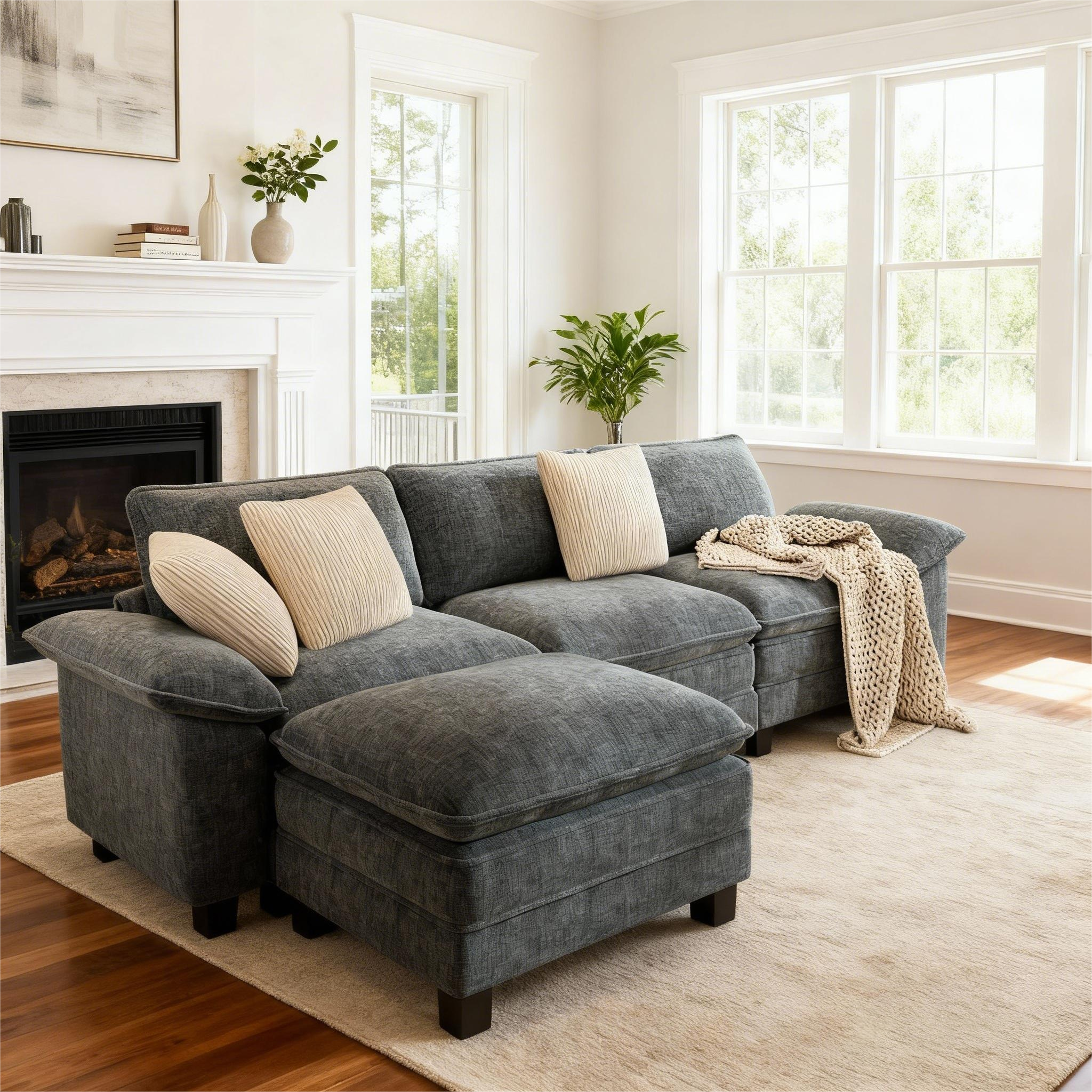 Upgrade your living room with the ultimate blend of comfort and versatility. This modular chenille sectional sofa with ottomans and removable arms offers cloud-like softness, customizable layouts, and easy maintenance—perfect for modern homes and apartments.