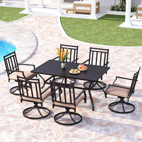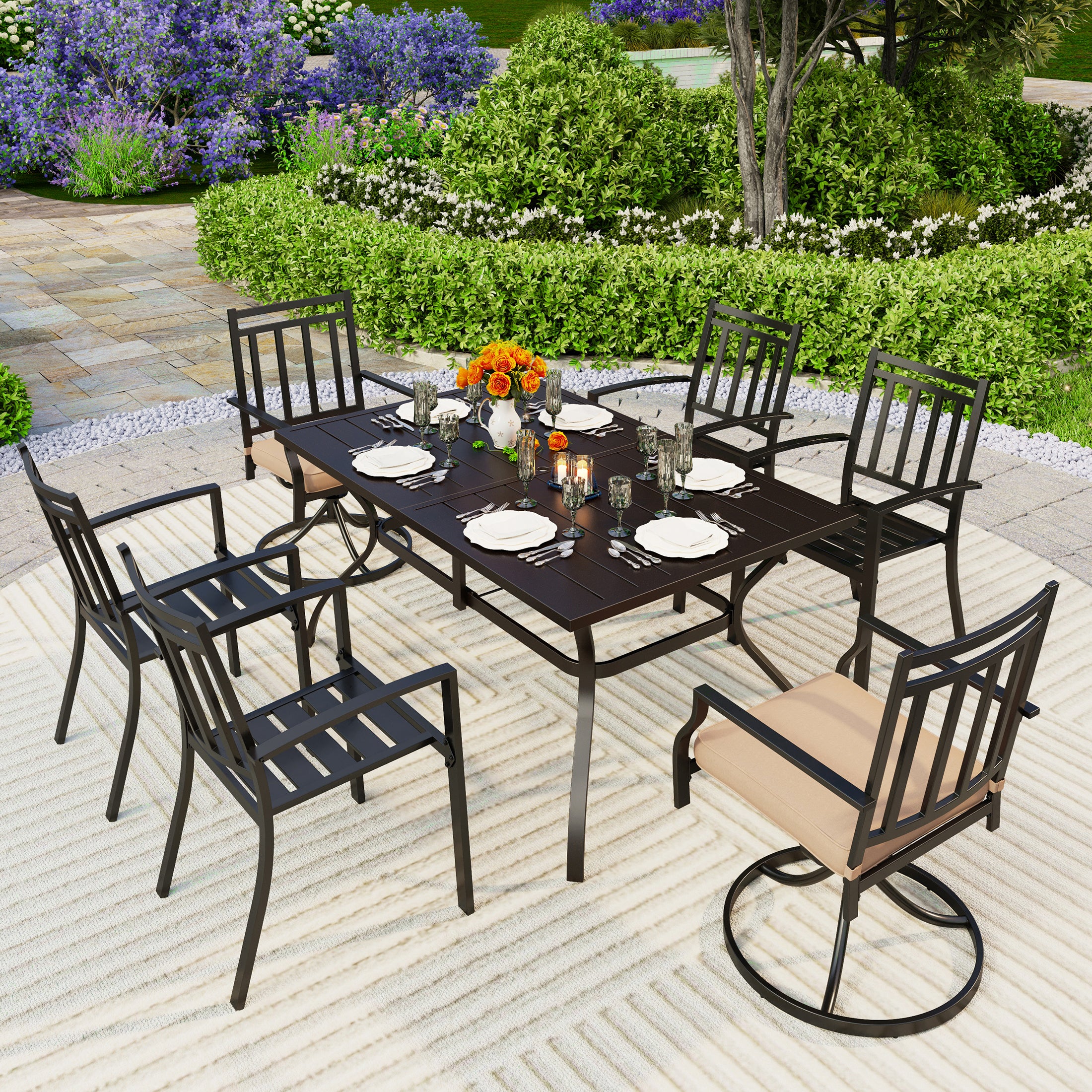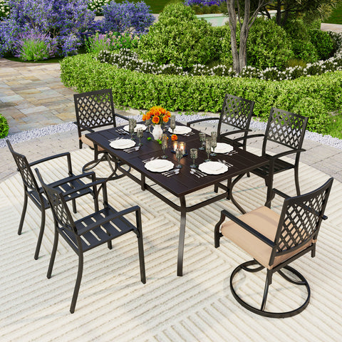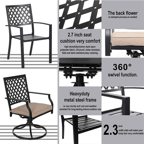 These dining sets come in 4 Boxes. Contact us if you receive only one tracking number. The mix sets include 1 table, 4 stackable chairs & 2 swivel chairs.