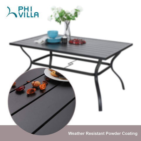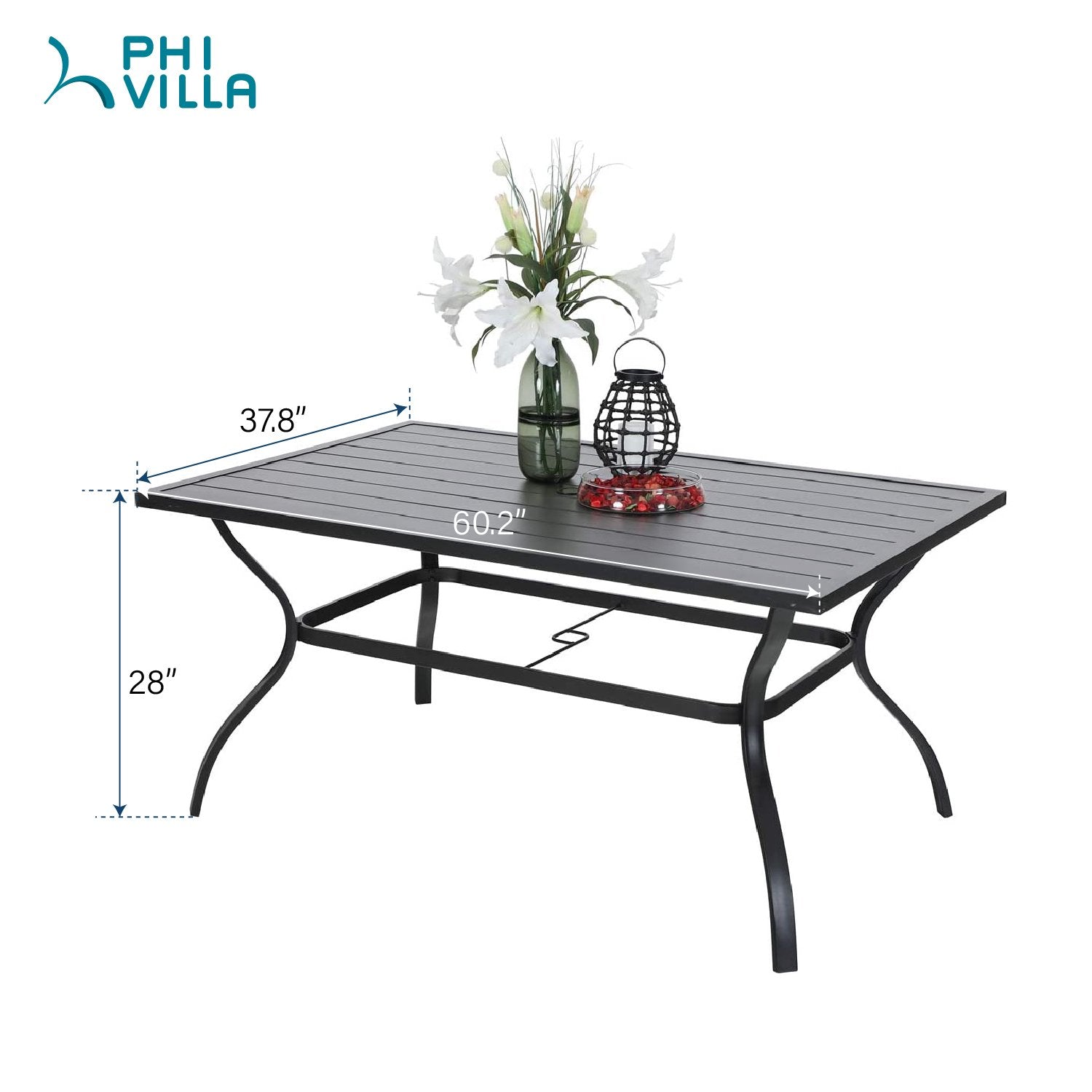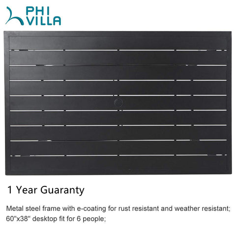 Table Size: 60.2"L x 37.8"W x 28"H; Diameter of umbrella hole:1.57".