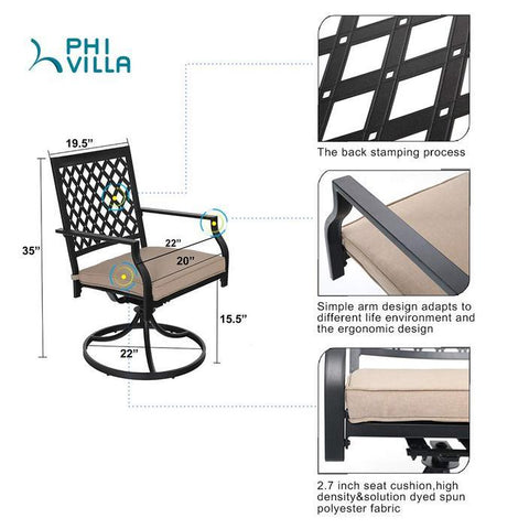Swivel Chair Size: 18"D x 20"W x 35"H, Seat Height:15"; Weight Capacity: 300 LBS; Cushion Thickness: 2.7".