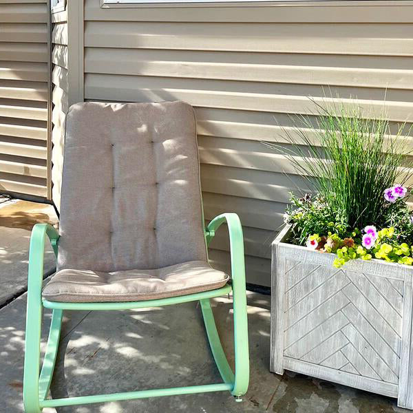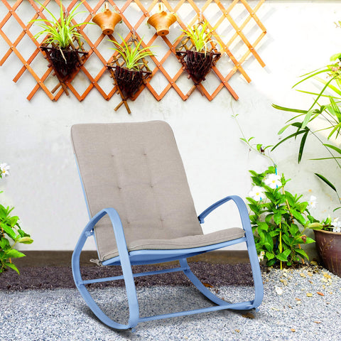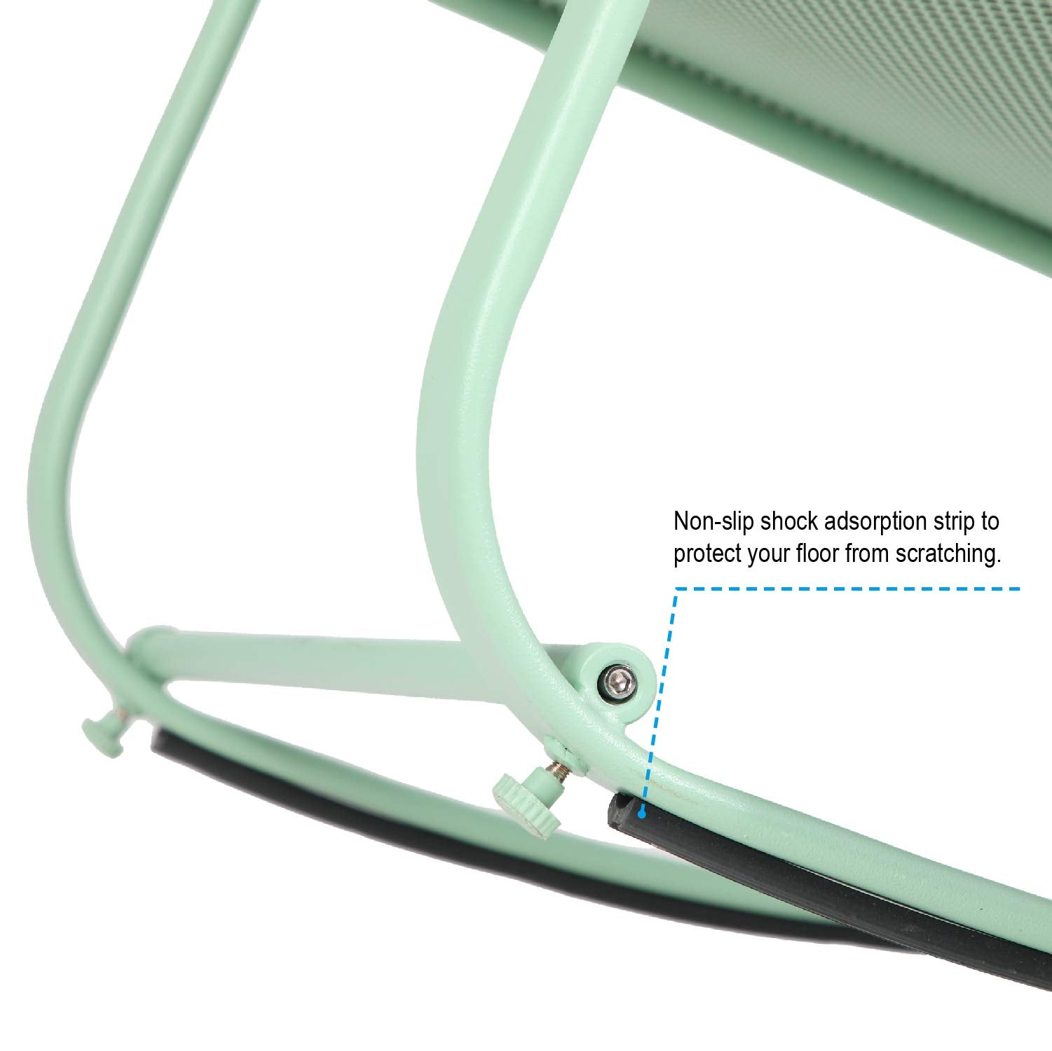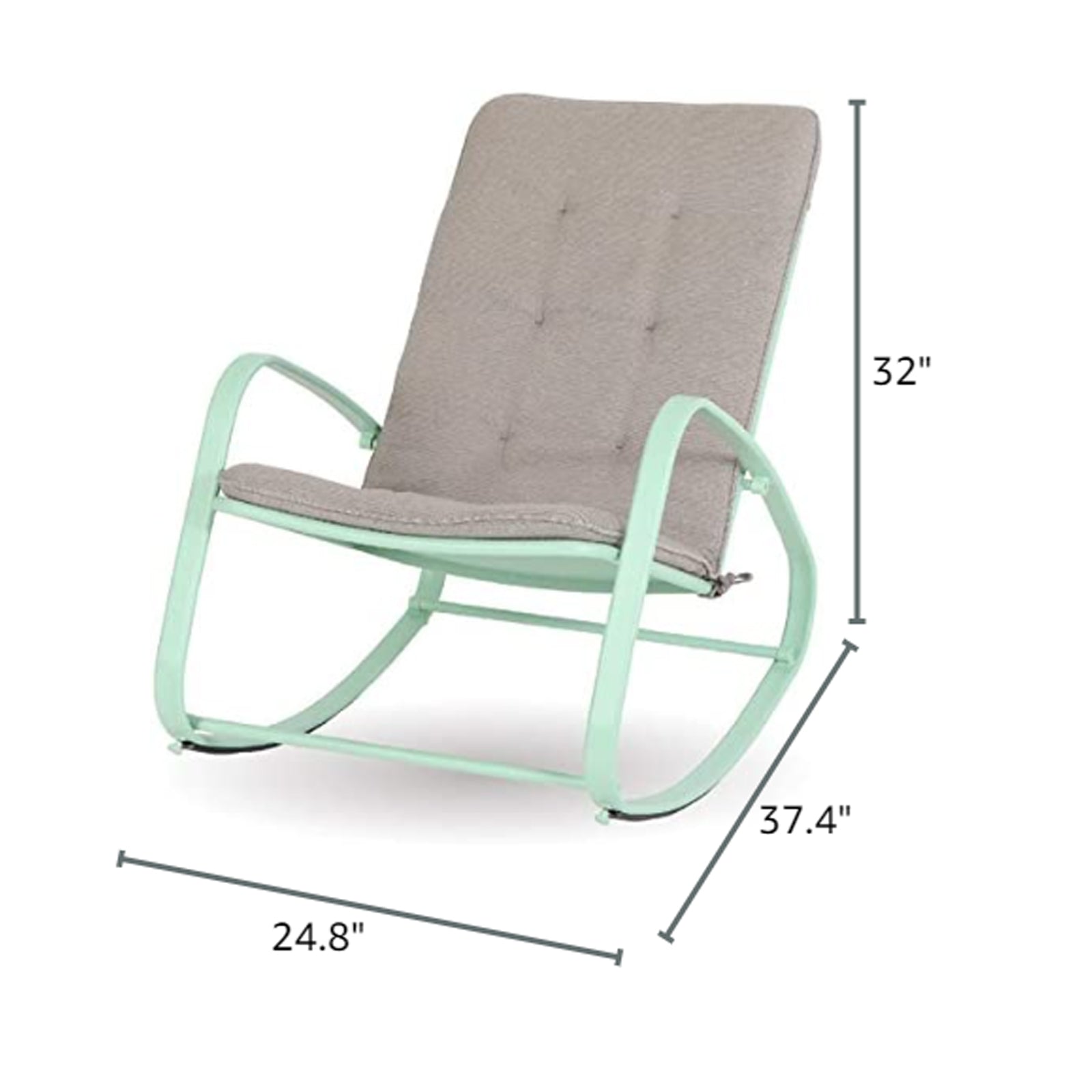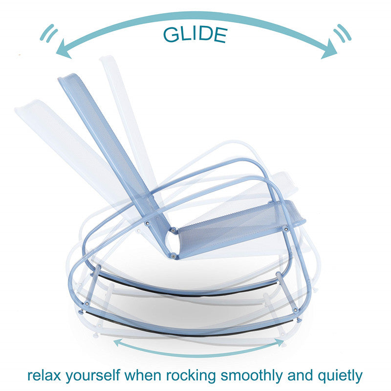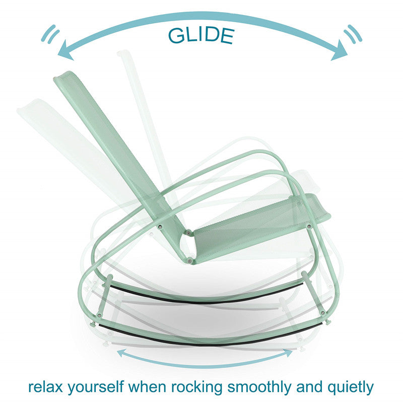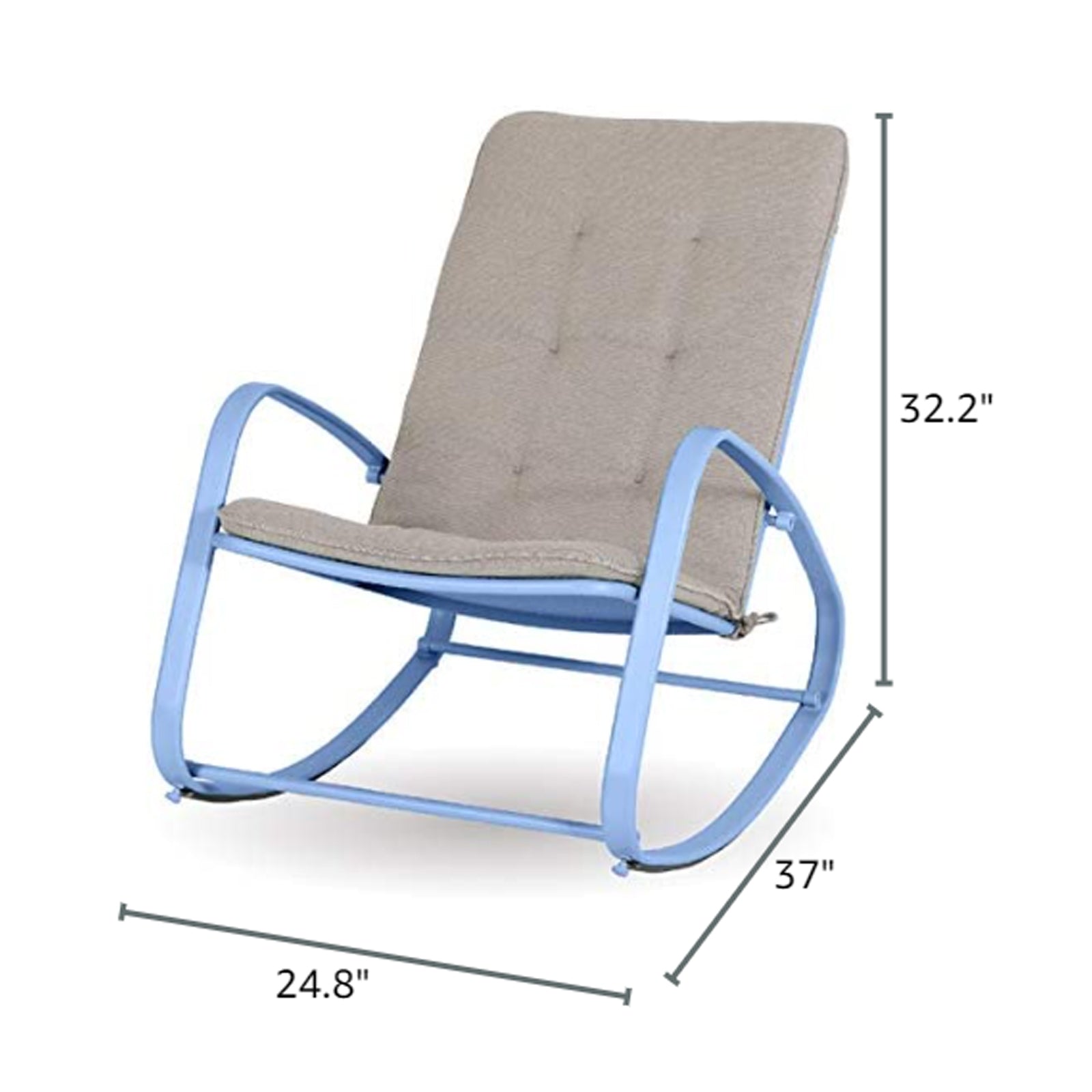 This Rocking chair is made of heavy-duty steel frame, with e-coating for rust and corrosion Resistant. The detachable rope tie cushion adds comfort while considering the feasibility of cleaning. The swing shaft is designed in triangular symmetry, 4 limit screws on the front and back reduce the risk of tilting caused by large rocking.