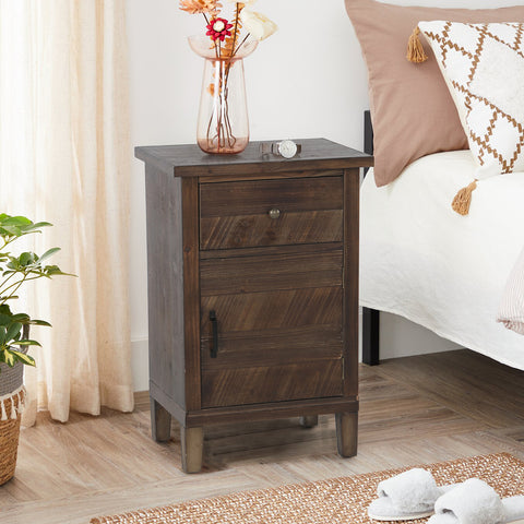 Sophia & William Retro Side Table Storage with 1 Drawer & 1 Door, MDF + Solid Wood Veneer End Table