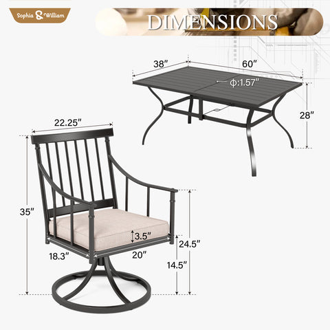 Table (Horizontal): 60.2"L x 37.8"W x 28"H; Umbrella hole:1.57"