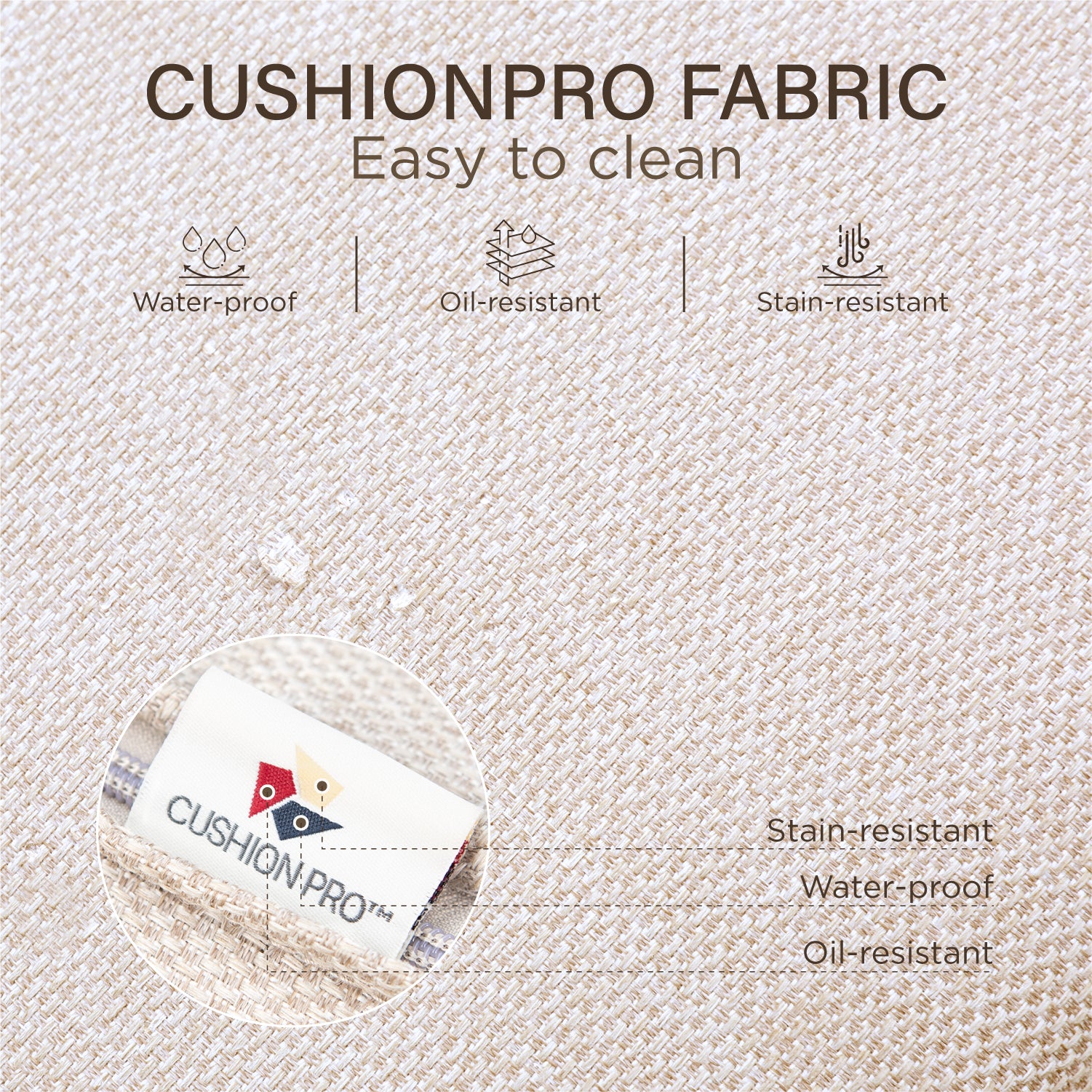 • Durable CUSHION PROTM fabric: water-repellent, oil-resistant, and stain-resistant